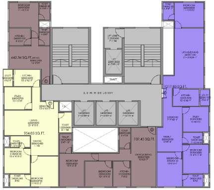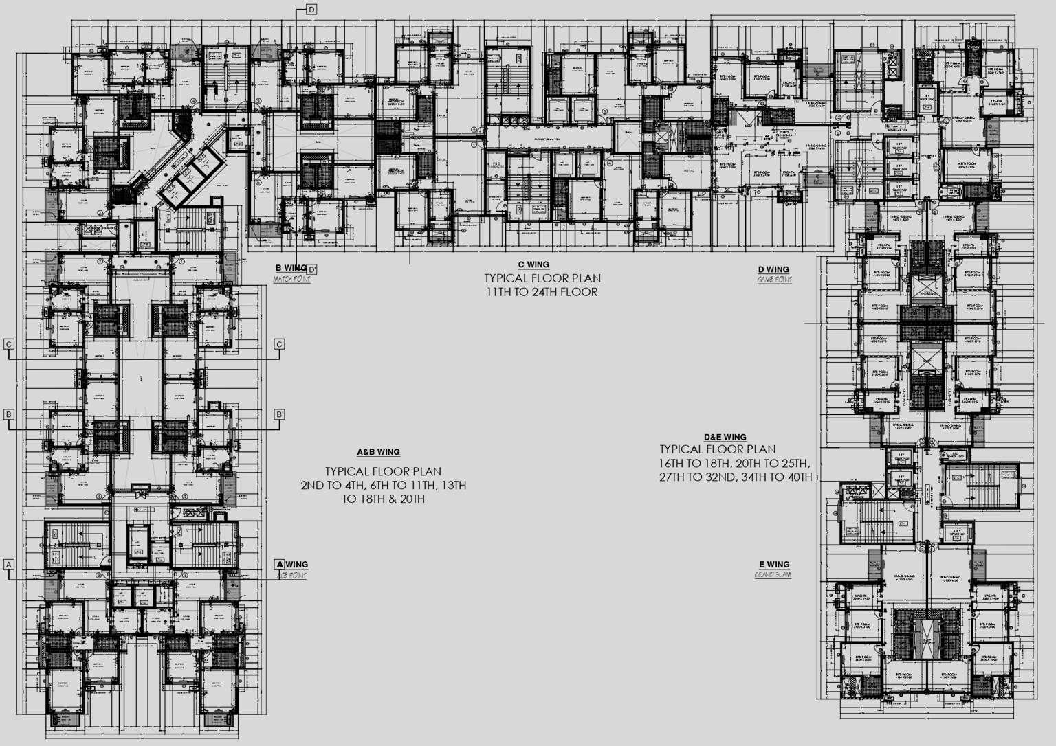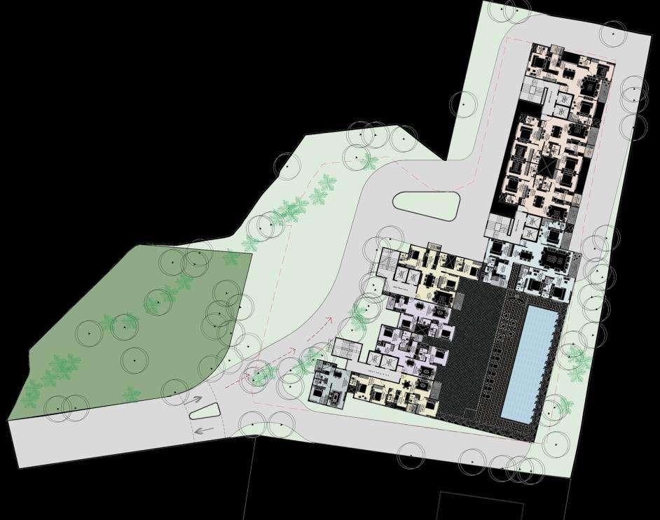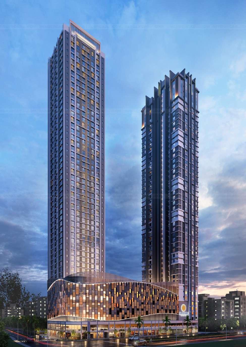 The mixed-use redevelopment project by Sainath Developers in Mulund, Mumbai, is an ambitious G+50 development currently at the conceptual stage. Featuring two towers, the ground floor is dedicated to retail shops, while the first five floors accommodate parking and office spaces. An additional e-deck level provides communal amenities. The project includes 45 floors of residential units, with one tower designated for sale and the other for residents, integrating five societies into a single tower. This presents an extremely challenging task in space allocation, demanding innovative and efficient design solutions to seamlessly fit all apartments together.