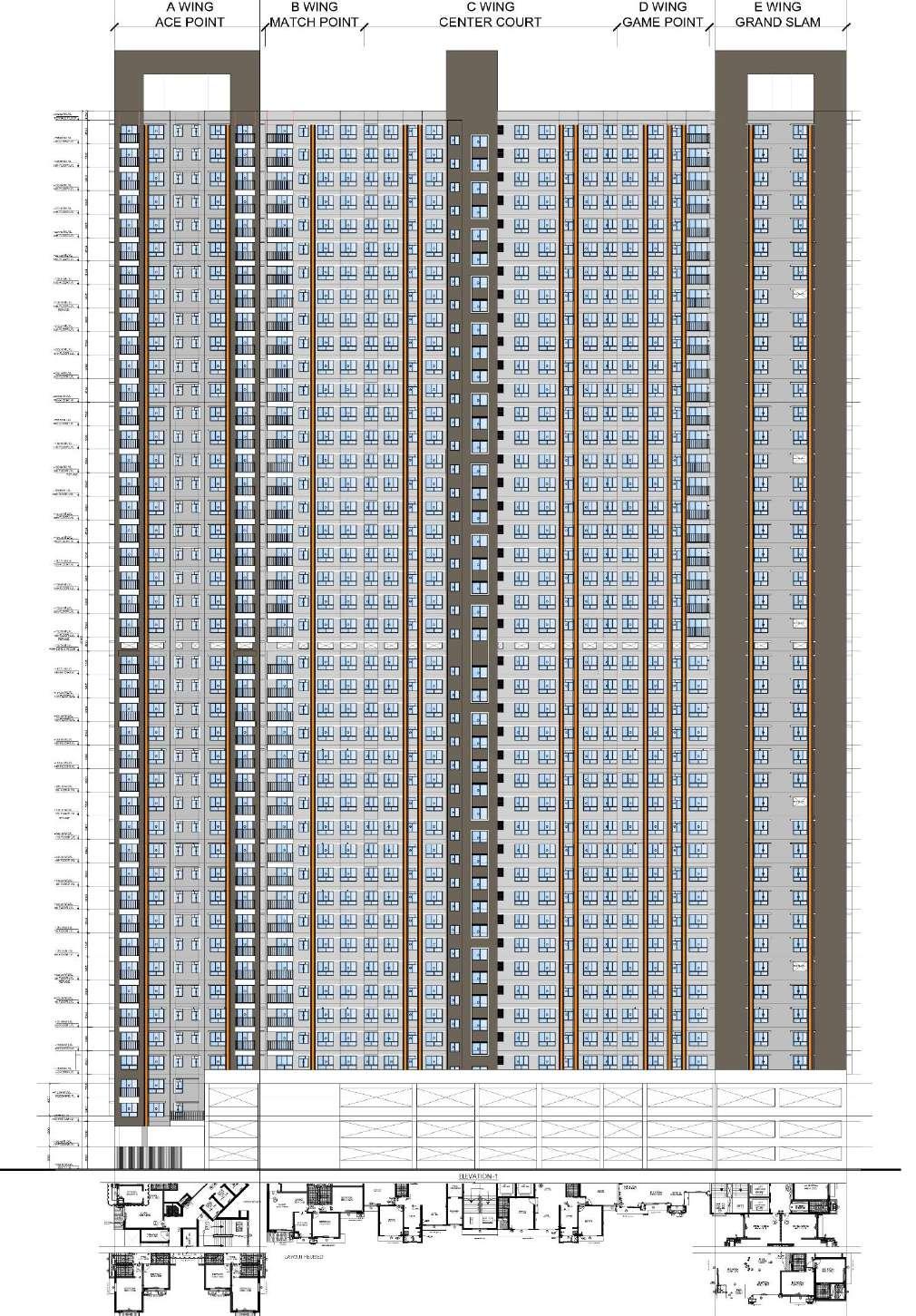 The residential project located in Mulund, Mumbai, is a prestigious development by Shapoorji Pallonji, currently under construction. The project features five wings, each with a unique tennis-themed name, such as Wing A: Ace Point and Wing B: Game Point. The structure includes a ground floor, three levels of podium parking, and 40 levels of residential units. The concept focuses on providing amenities that reflect the project's tennis theme, creating a cohesive and engaging living environment. This innovative approach aims to offer residents a unique lifestyle experience, centered around the dynamic spirit of tennis.