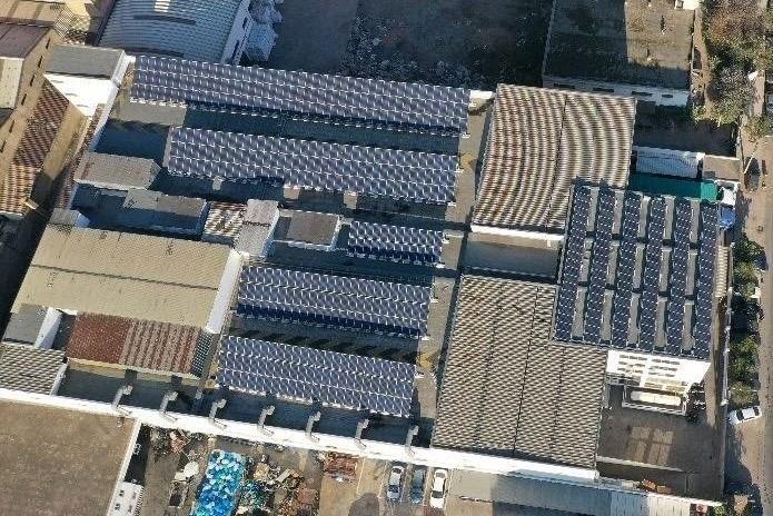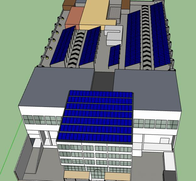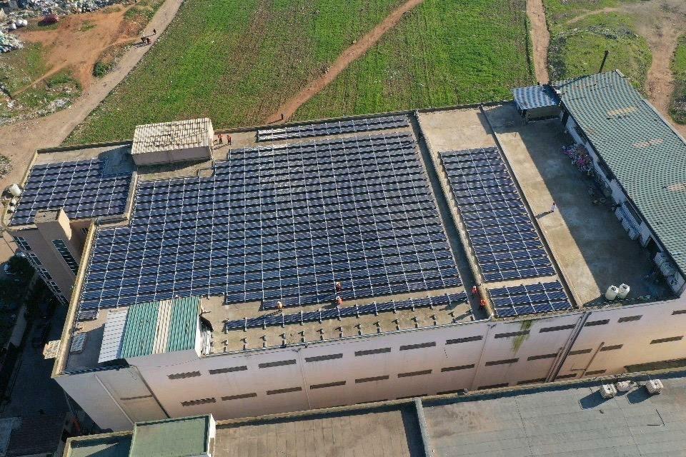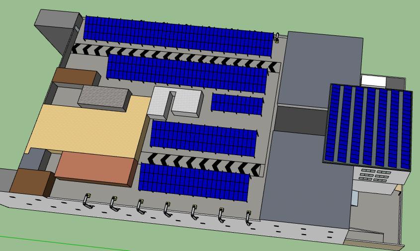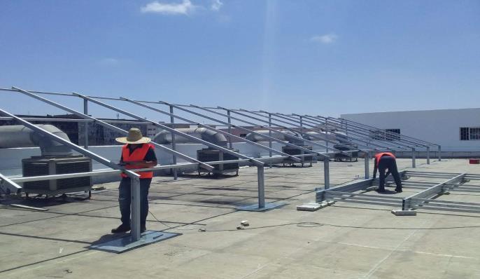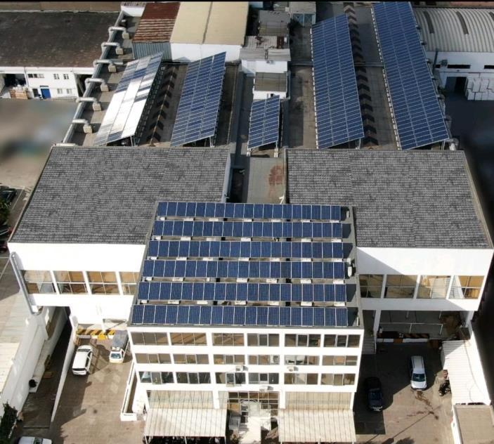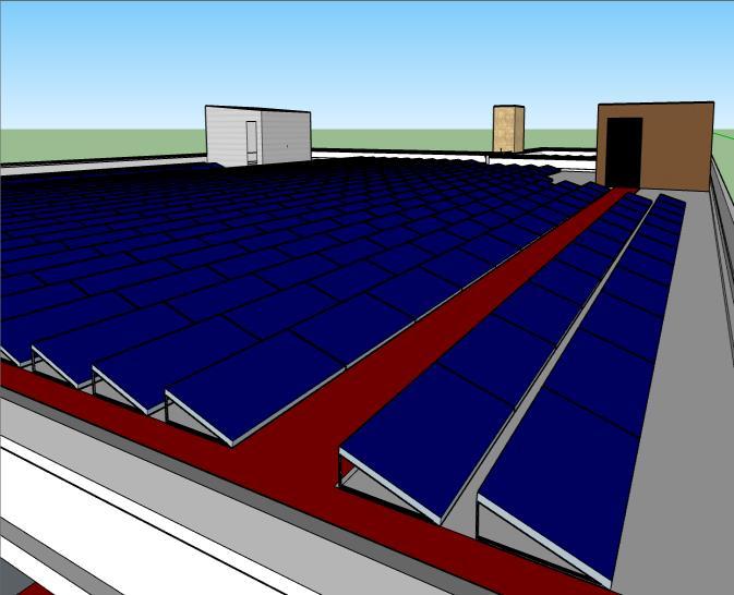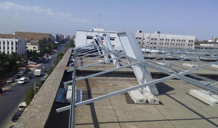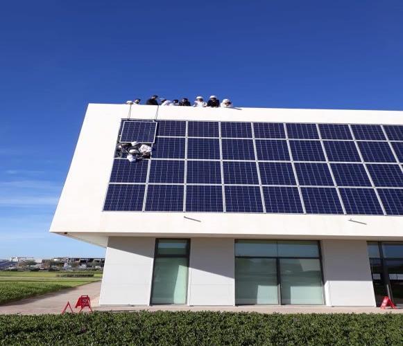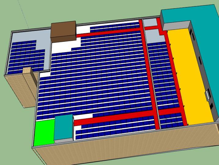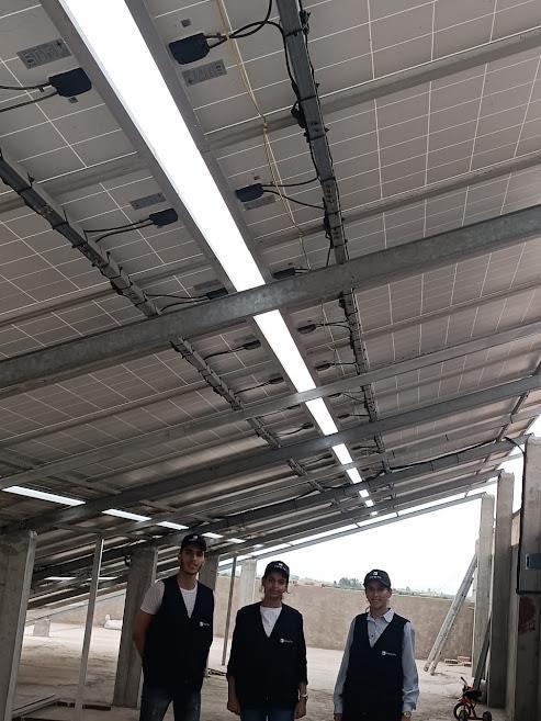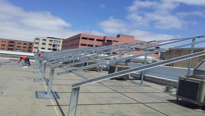 Die erste Phase des Projekts war die Installation der Metallkonstruktionen und der Solarmodule. Wir haben die Metallkonstruktionen auf das Dach gebracht, um sie zu installieren. In der gleichen Projektphase haben wir die Solarmodule installiert.