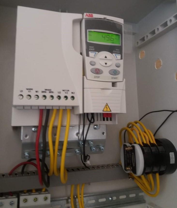 Der Frequenzumrichter des Projekt. Die Pumpe des Bauernhofs.