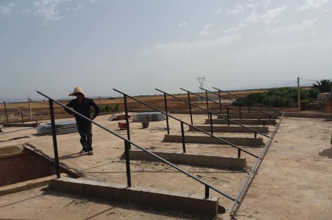 Die erste Phase des Projekts war die Installation der Metallkonstruktionen und Solarmodule. Aufgrund des Strommangels auf dem Hof haben wir die Metallkonstruktionen in der Werkstatt des Unternehmens hergestellt, dann brachten wir die die Metallkonstruktionen auf das Dach, um sie zu installieren. In der gleichen Projektphase haben wir die Solarmodule installiert.