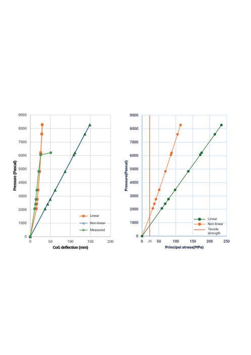 The study involves a novel experimental campaign to assess volunteers’ levels of perception and acceptance of various glass deformations.The glass was deformed using a bespok electro-pneumatic system at levels corresponding to below, above, and at the current serviceability limit. To insure safety of experiment , a break test was performed using similar IGU (1470x950) and the data collected was compared with FEA in Ansys to set a safety threshold for the experiment. The Electro-pneumatic system was able to to deflect the IGU in a cyclic motion mimicing movement during a wind load.