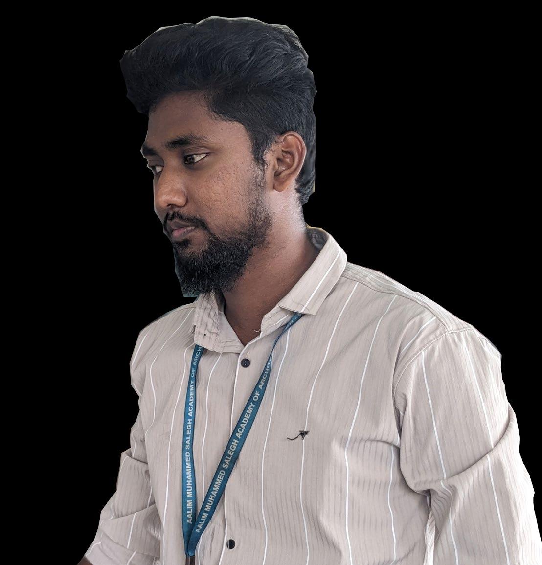 I am fourth year Architecture Student at Aalim Muhammed Salegh Academy of Architecture, Chennai-55, with a particular interest in the landscape design field. For me, the most fascinating aspect of design is seeing how it is applied in various fields all over the world. I have acquired good drafting skills, and organisational skills through my three and half years in the field of Architecture.