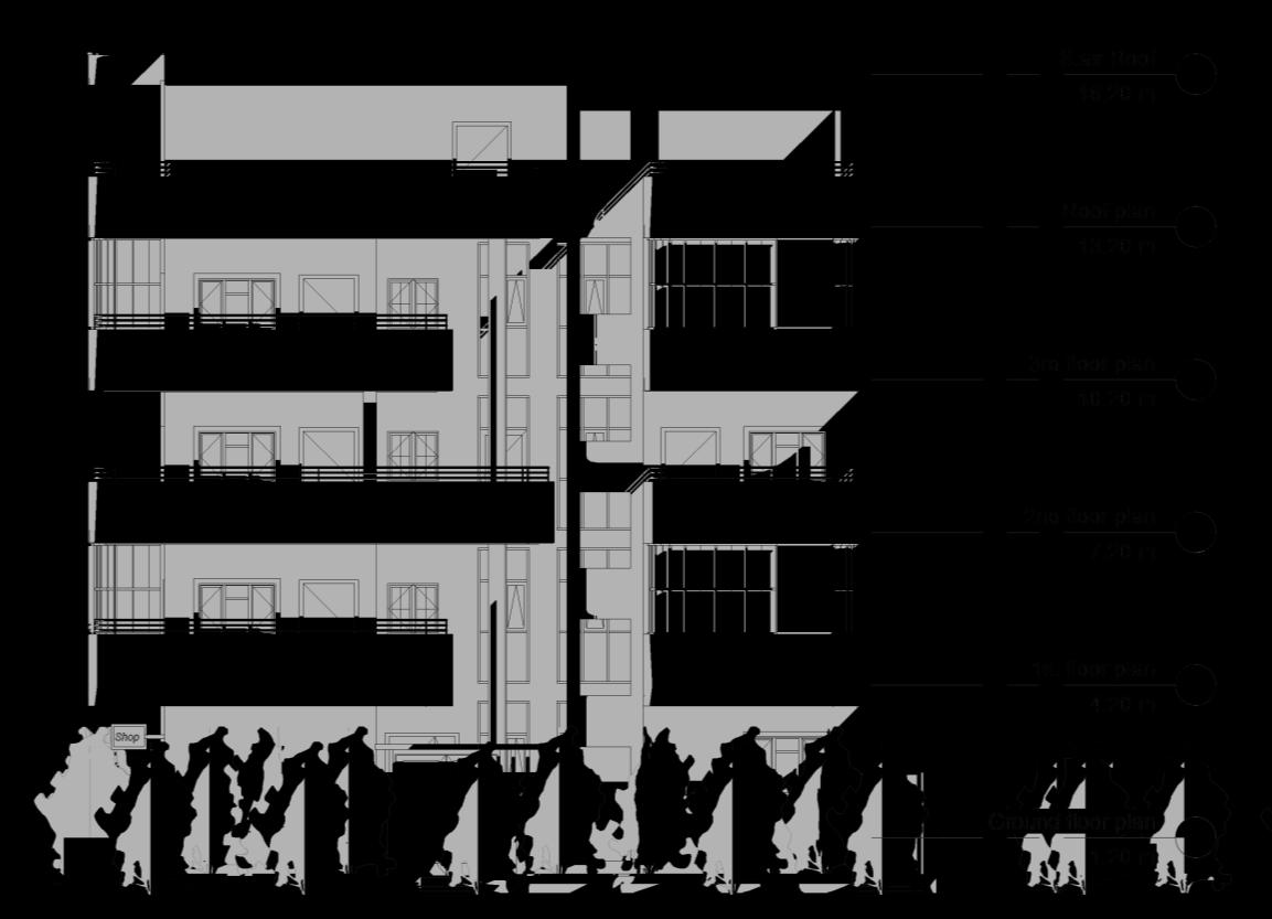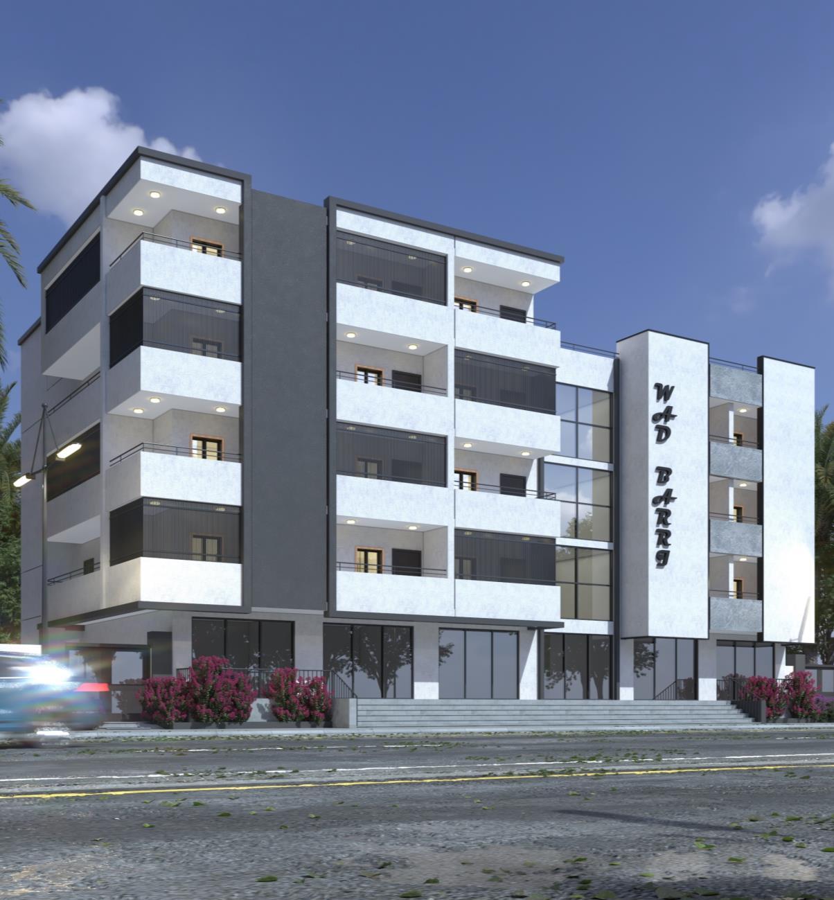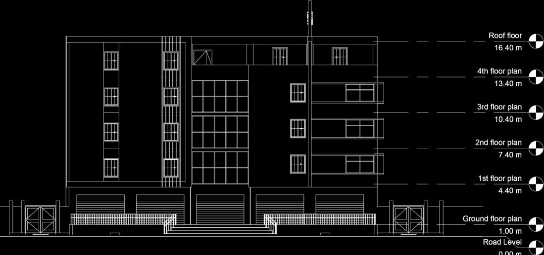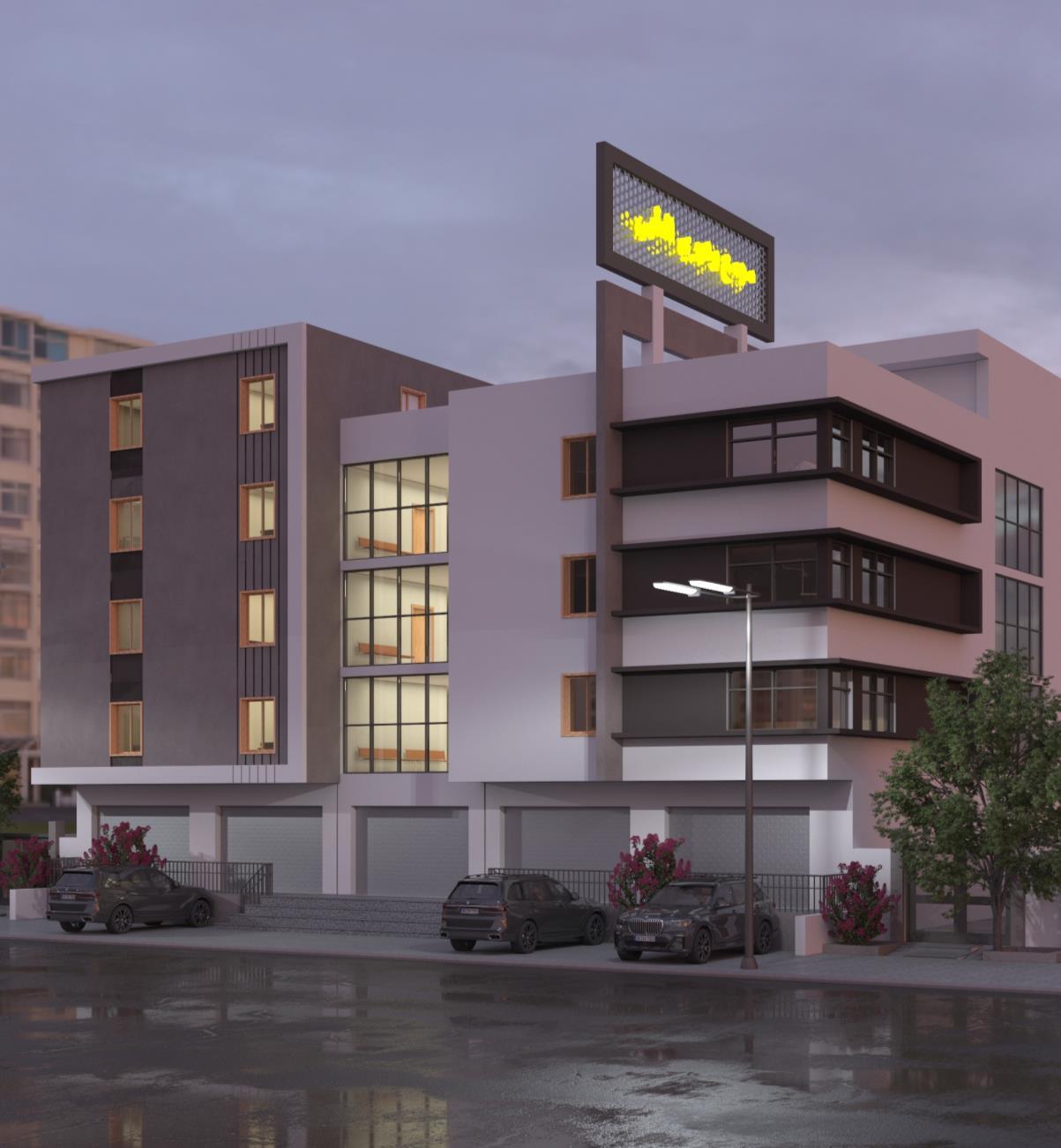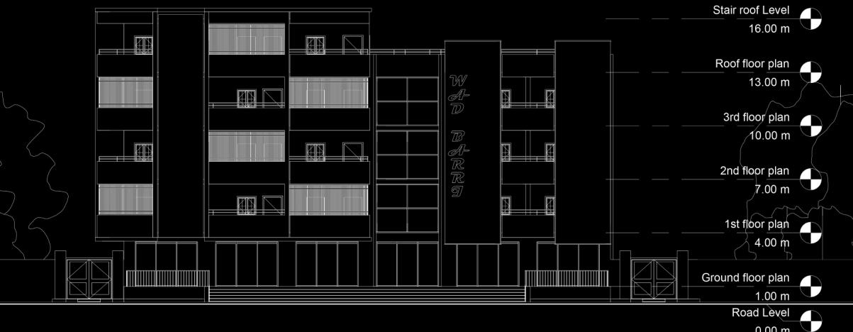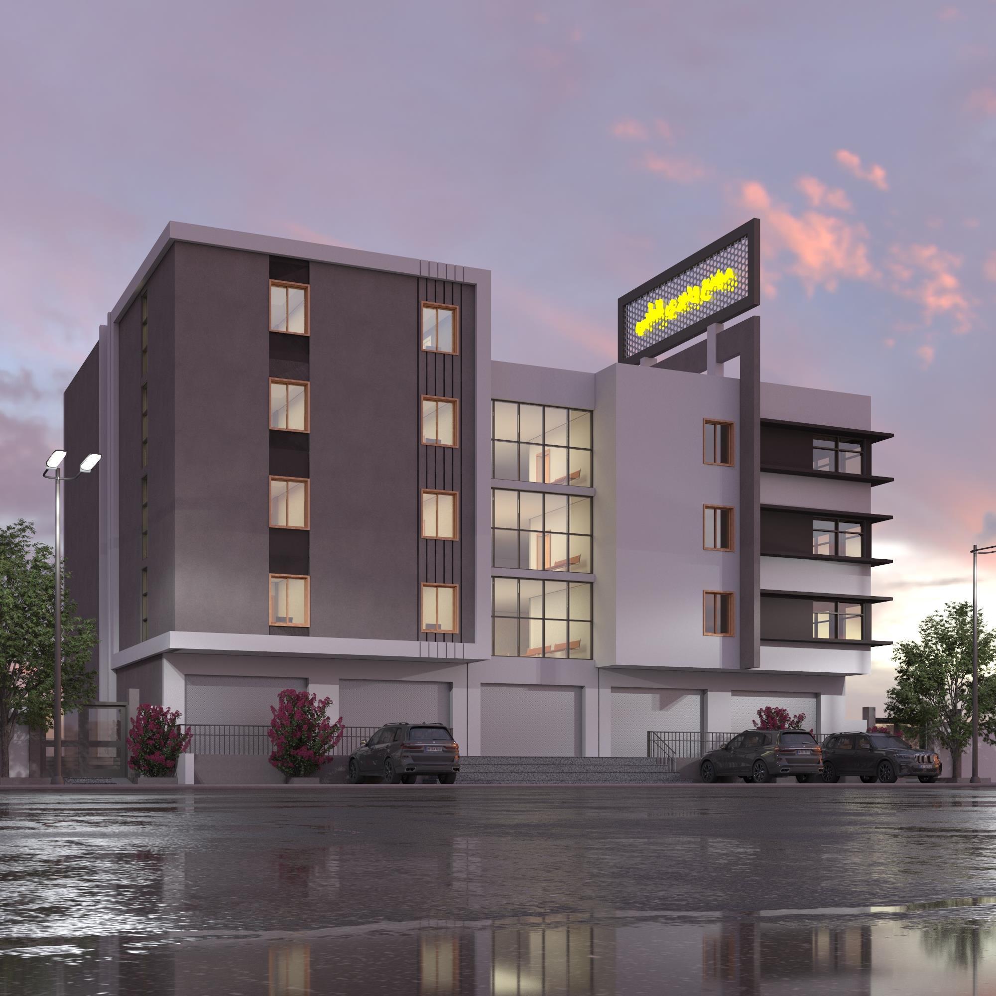 using clear Vertical & Horizontal Shapes in Façade design distributed in a parametric way, wide opening’s to bring more natural Light, white color make the design appears more lighter and carefree, Black color give more Contrast To the Design
