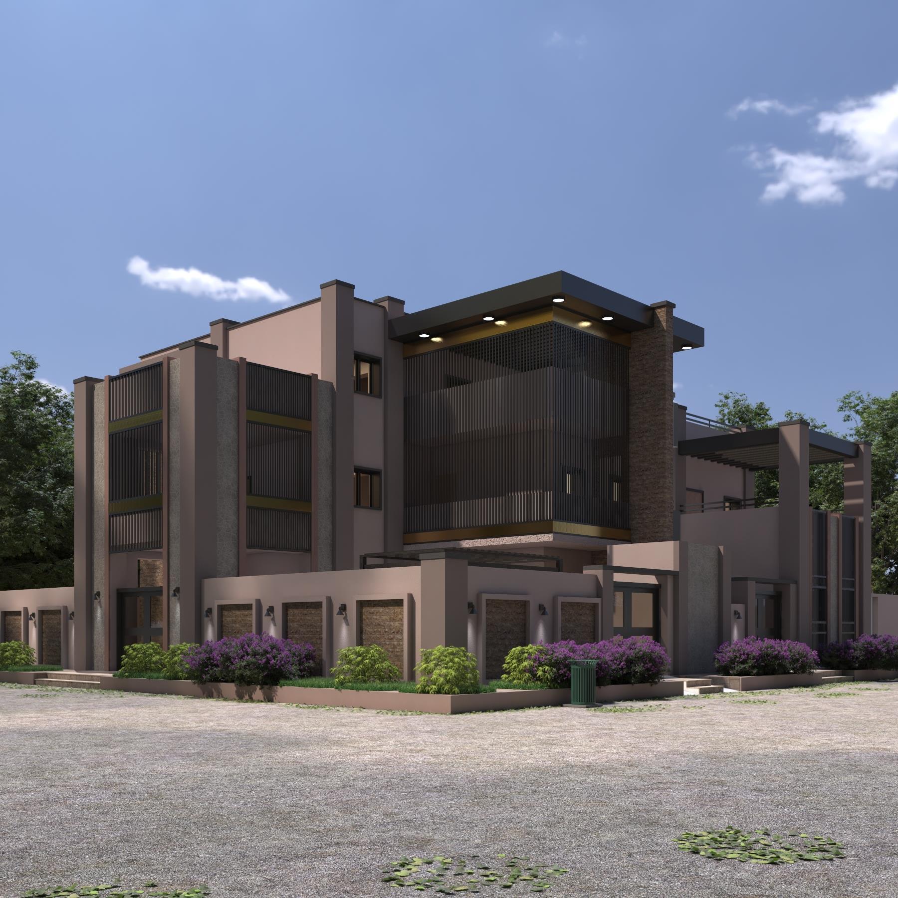 - So I used clear Vertical & Horizontal Lines & Shapes in Façade design, wide opening’s to bring more natural Light, combining Gray color with white make the design appears more lighter and carefree, The Gray color give more relaxed feeling.