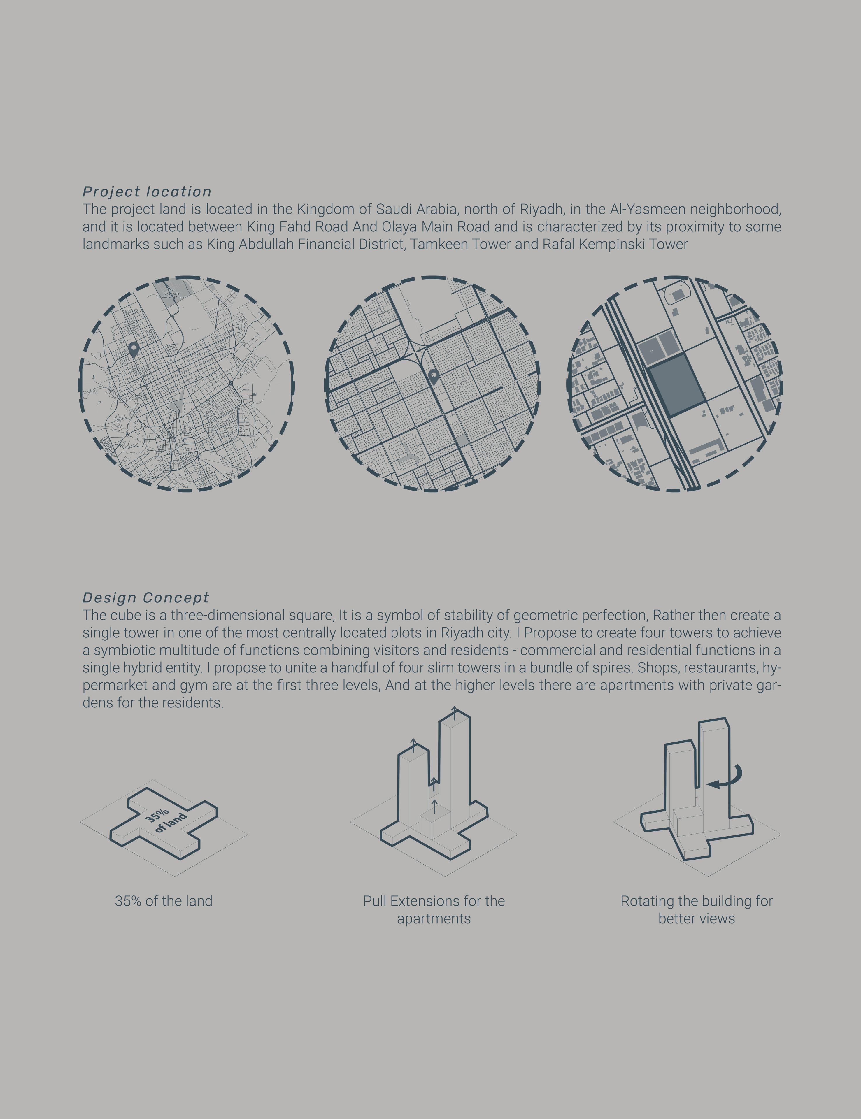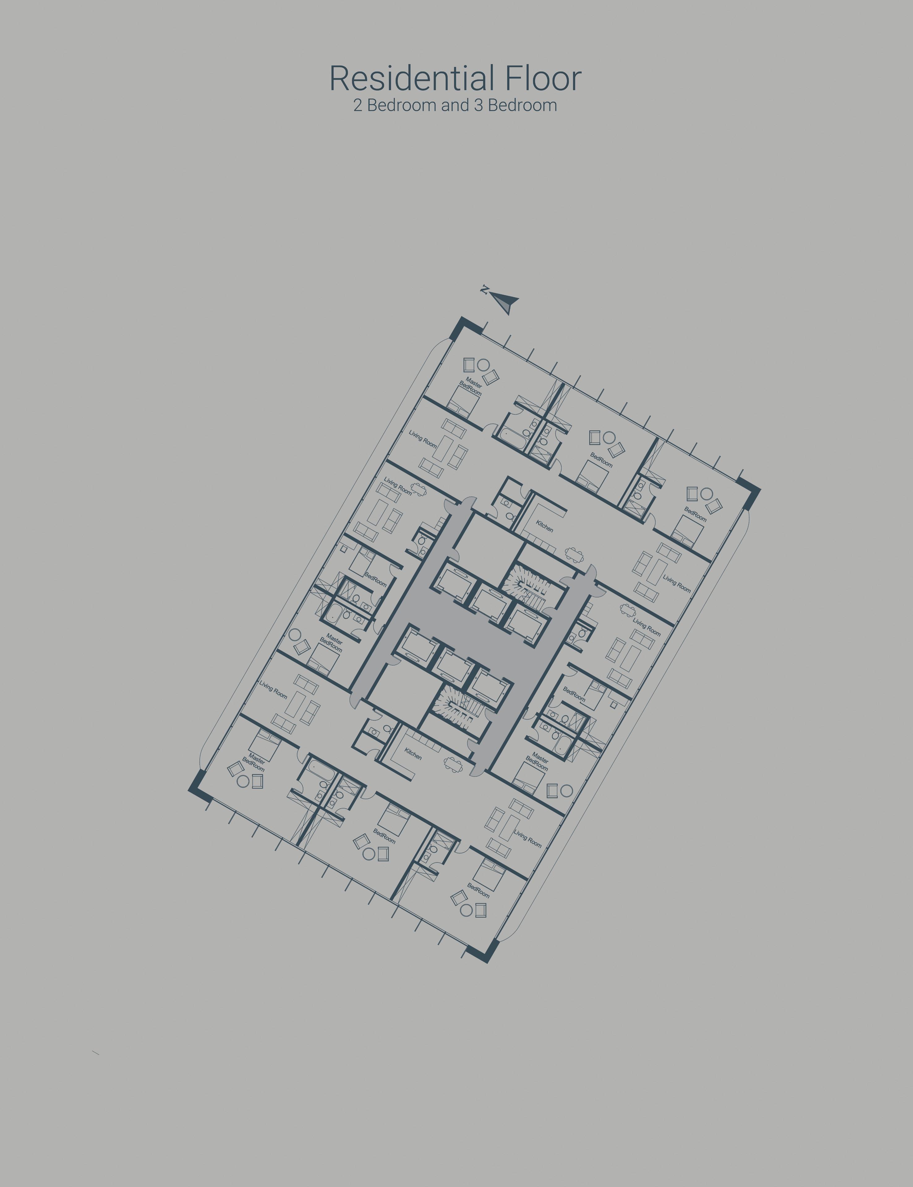 The tower comprises commercial and residential spaces. The first three floors are dedicated to commercial activities, hosting a variety of retail stores, a supermarket, entertainment zones, a gymnasium, restaurants, and cafes. From the fourth to the fiftieth floor, the tower transitions into residential living spaces. The residential floors feature a diverse range of housing options. Studio apartments offer compact living spaces suitable for individuals or couples, while one-bedroom units provide a bit more space with a separate living room. Two-bedroom units offer additional flexibility with an extra room for guests or office space, and three-bedroom units cater to larger families. Penthouses are incorporated into the design, providing a unique luxury residential experience within the tower. Residents can enjoy private gardens, adding a touch of greenery to urban living.