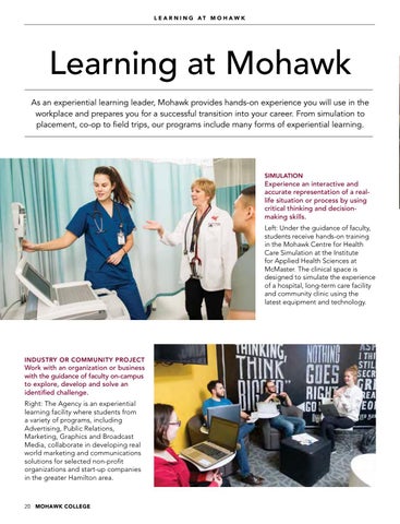 Learning at Mohawk As an experiential learning leader, Mohawk provides hands-on experience you will use in the workplace and prepares you for a successful transition into your career. From simulation to placement, co-op to field trips, our programs include many forms of experiential learning.