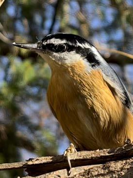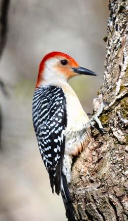 Many of our winter resident songbirds are also year-round residents. These non-migra tory species can make an adequate living from the sometimes-scant amount of food present during the heart of winter. This may seem a risky survival strategy, but by staying here they avoid the hazards associated with a long migration flight. Their more flexible diet sets them up to endure the vagaries of any single winter food resource. Those of us that have bird feeders know most of these year-round ers well. They include the Wild Turkey, Ruffed Grouse, Black-capped Chickadee, Tufted Titmouse, White-breasted Nuthatch, Northern Cardinal, Mourning Dove, Downy