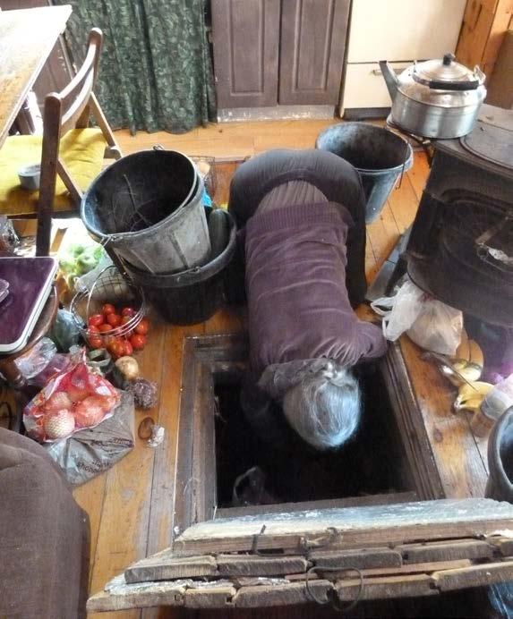 It’s impossible to eat or process all the beautiful apples we compulsively gathered, so they eventually begin to compost in the root cellar, giving our cottage an aroma of old cider/vinegar from the apple mush in the bottom of the buckets. We are bringing in garden vegetables now, so the 5-gallon rubber buckets of decaying apple slush must be hauled to the compost pile and washed. The clean, dry buckets are then filled with unwashed carrots, potatoes, and other delicacies harvested from the garden. These vegetables will be stored and kept through much of the winter.