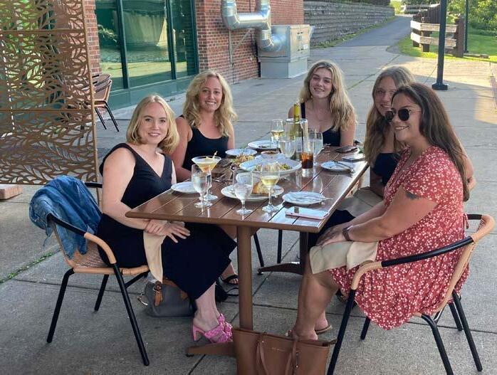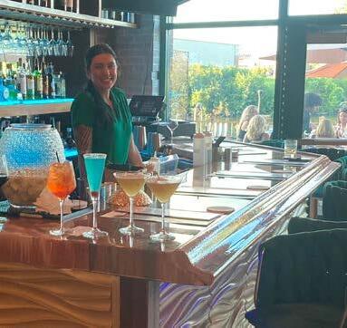 Young ladies are celebrating a bon voyage over Signature Drinks and appetizers: Bruschetta Aglio (garlic bread), and Antipasto Di Mare (seafood). “Cheers!” they say in chorus with clinking stemware.