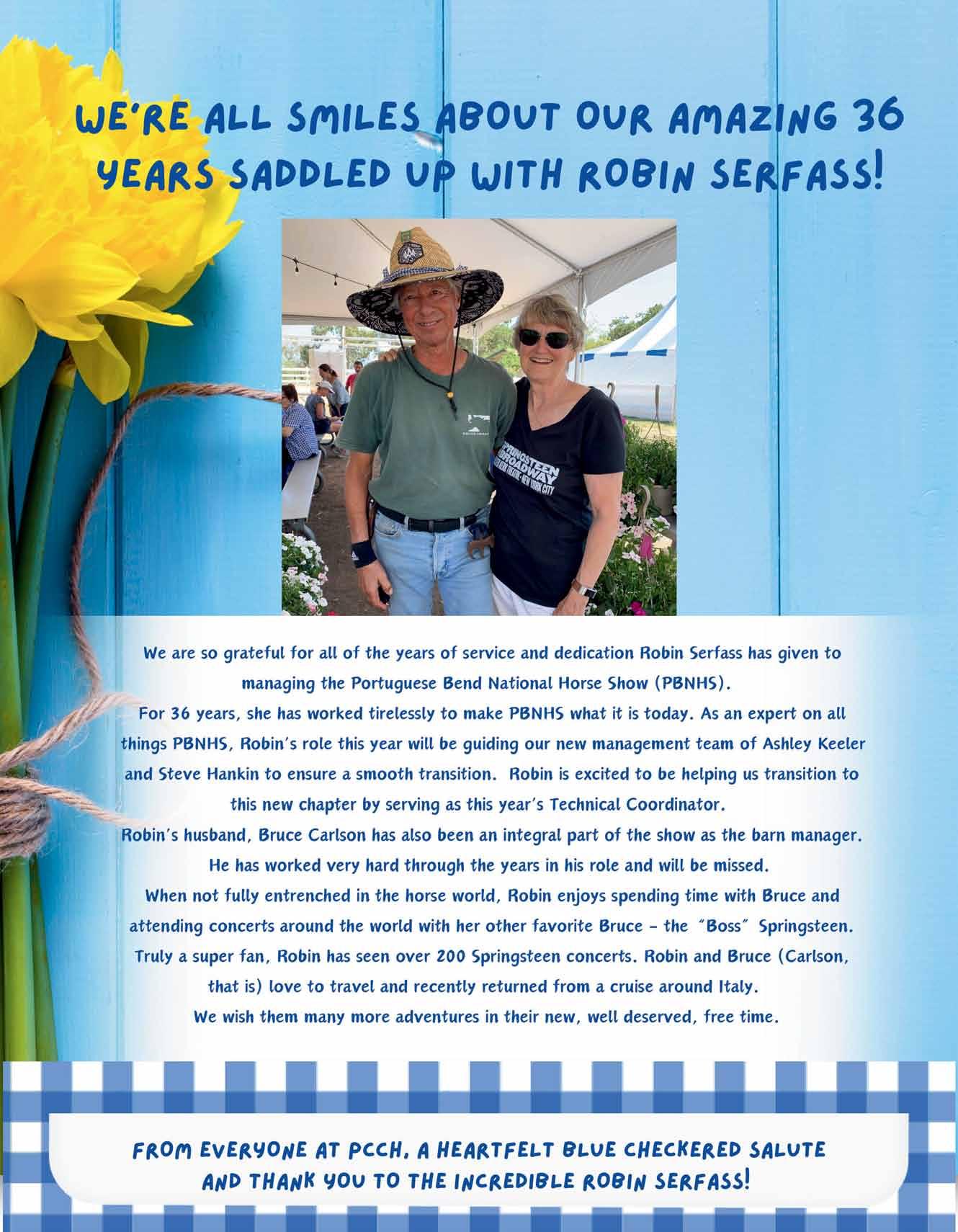 Our 2024 theme, “Saddle Up for Smiles. Providing Health and Hope to Kids,” highlights PCCH’s ongoing commitment to helping young patients at CHLA and giving them a lifetime of smiles. Whether you are a longtime competitor, spectator, or are new to the PBNHS, we are delighted to welcome you to the show.