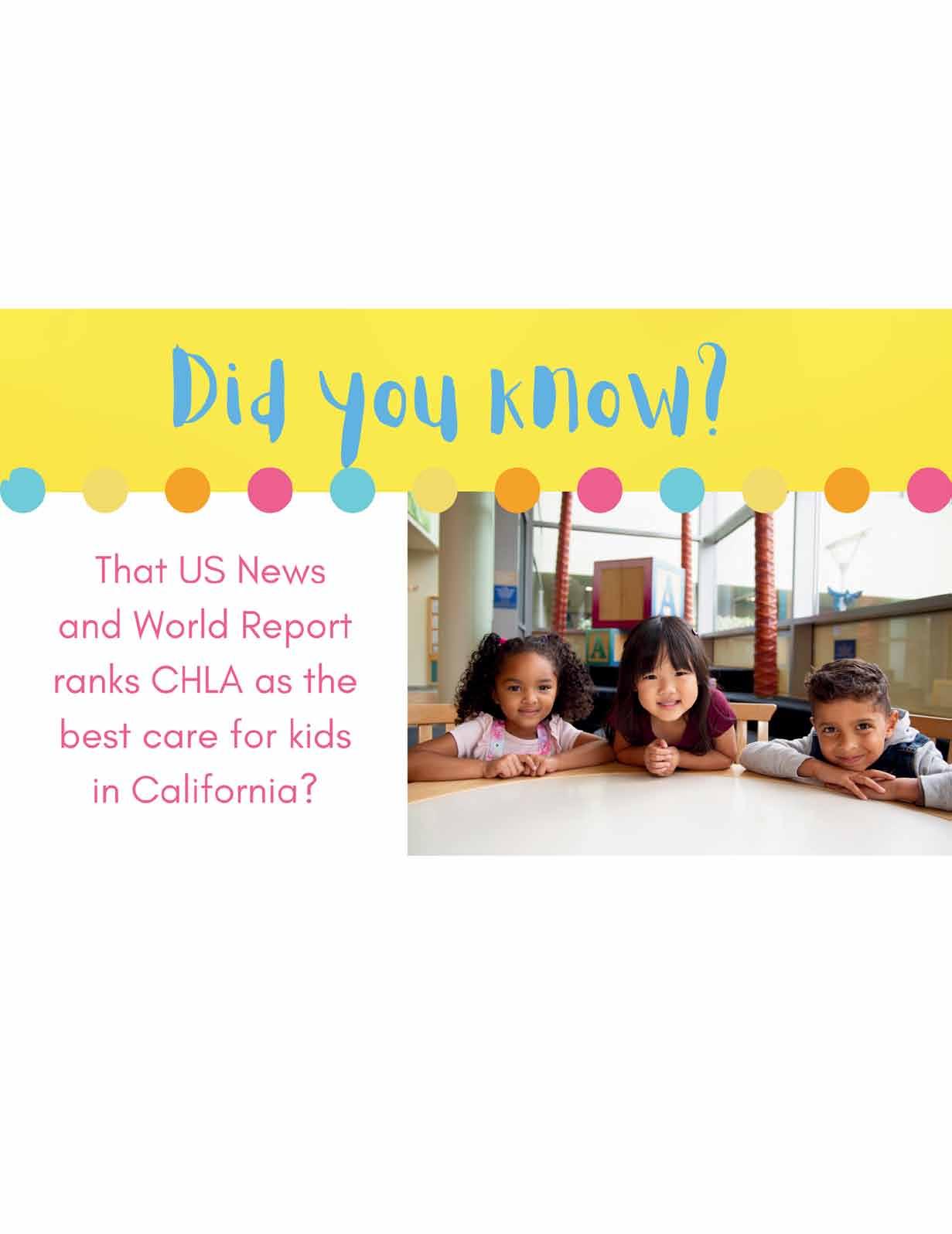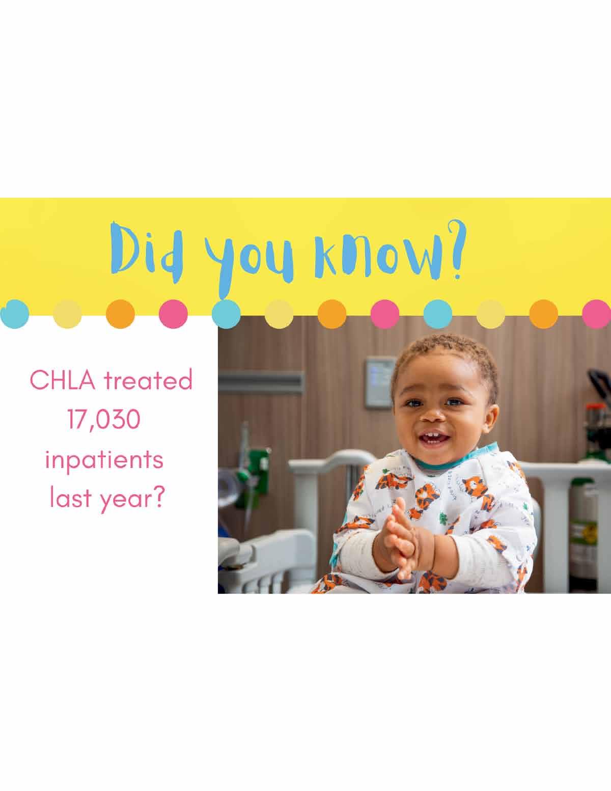 This event is being recorded and/or photographed. By attending, you agree that Children’s Hospital Los Angeles (CHLA) or its designees may record your image, voice or video of you for use you CHLA or its designees in promotions, fundraising, advertisement, to keep a record of the event or for any other purpose. By attending, you release CHLA and its designees from all liability and waive all claims for payment associated with the use of the recordings or photographs. You also waive any right to inspect or approve any image, voice or video recording. If you do not agree, please see someone at check in for further information.