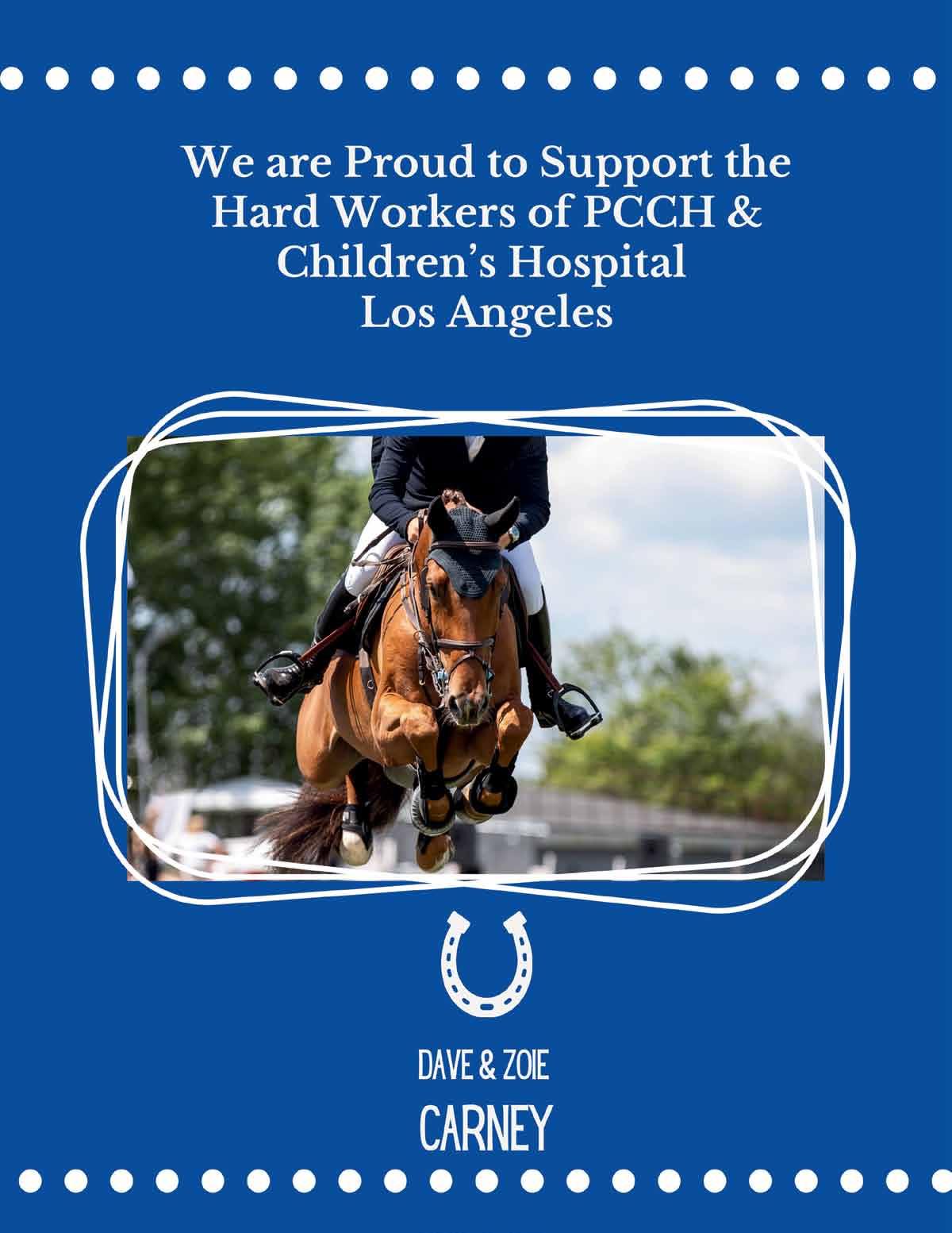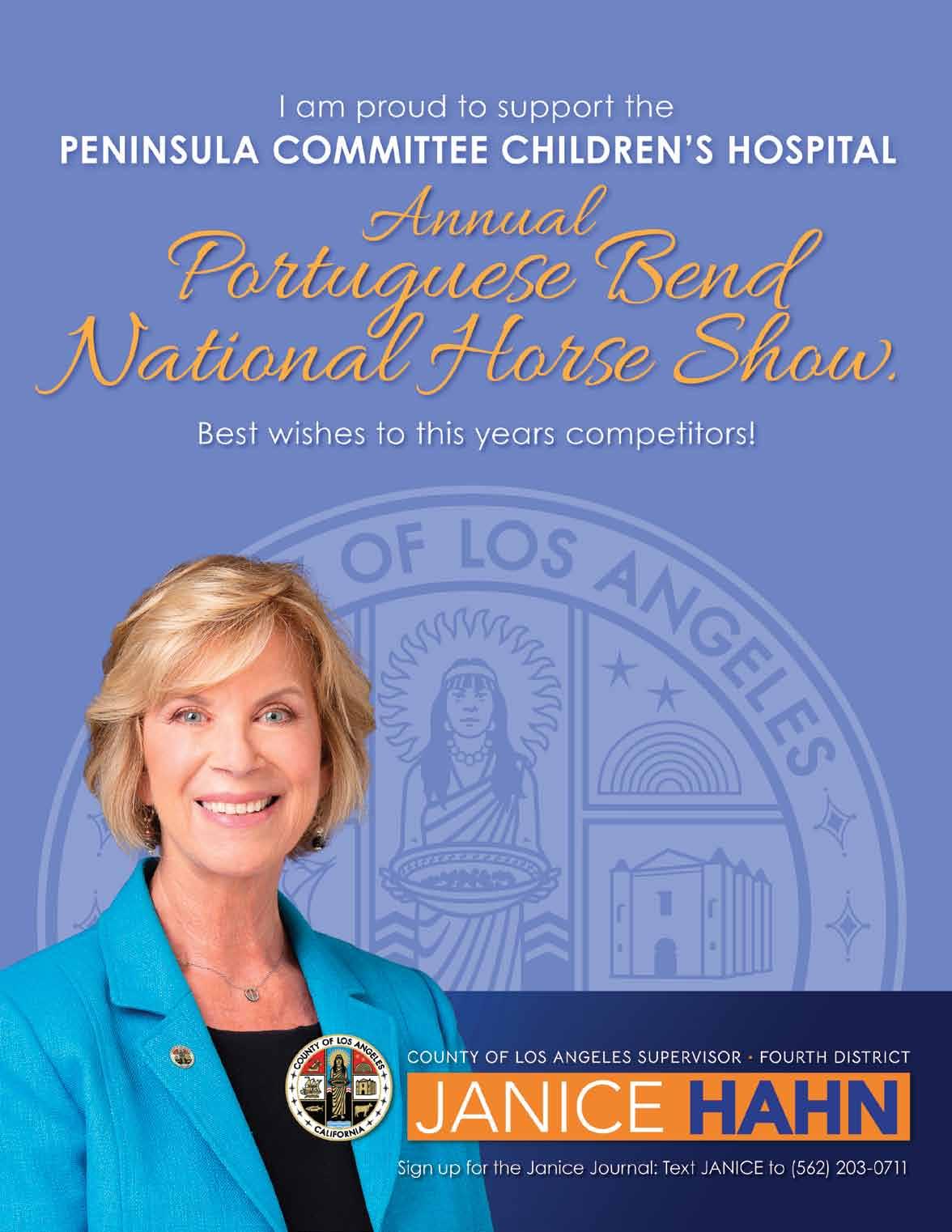Welcome to the 66th Annual Portuguese Bend National Horse Show (PBNHS) benefiting Children’s Hospital Los Angeles (CHLA). Peninsula Committee Children’s Hospital (PCCH) is a group of 175 families who work throughout the year to bring you this USEF nationally rated show. This year all proceeds from the show will benefit two programs at CHLA – The Associates Chair in Pulmonology and Sleep Medicine and The Associates Chair in Ophthalmology.