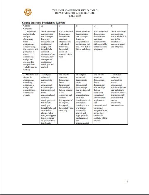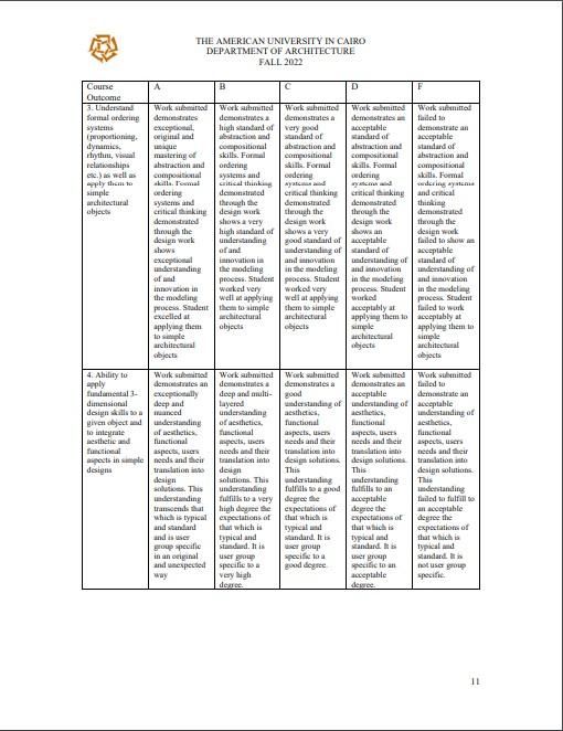 Rubric: Documentation of design stages. Analysis relating form to meaning.