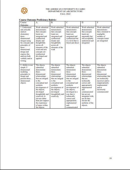 Documentation of design stages. Analysis relating form to meaning. Choice of relevant materials. Neatness of model. Visual appeal, interesting, not boring