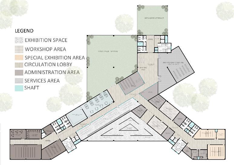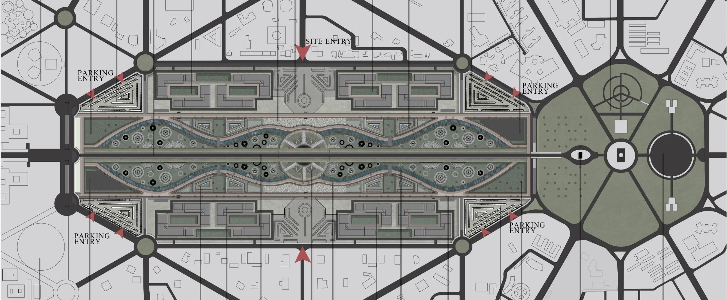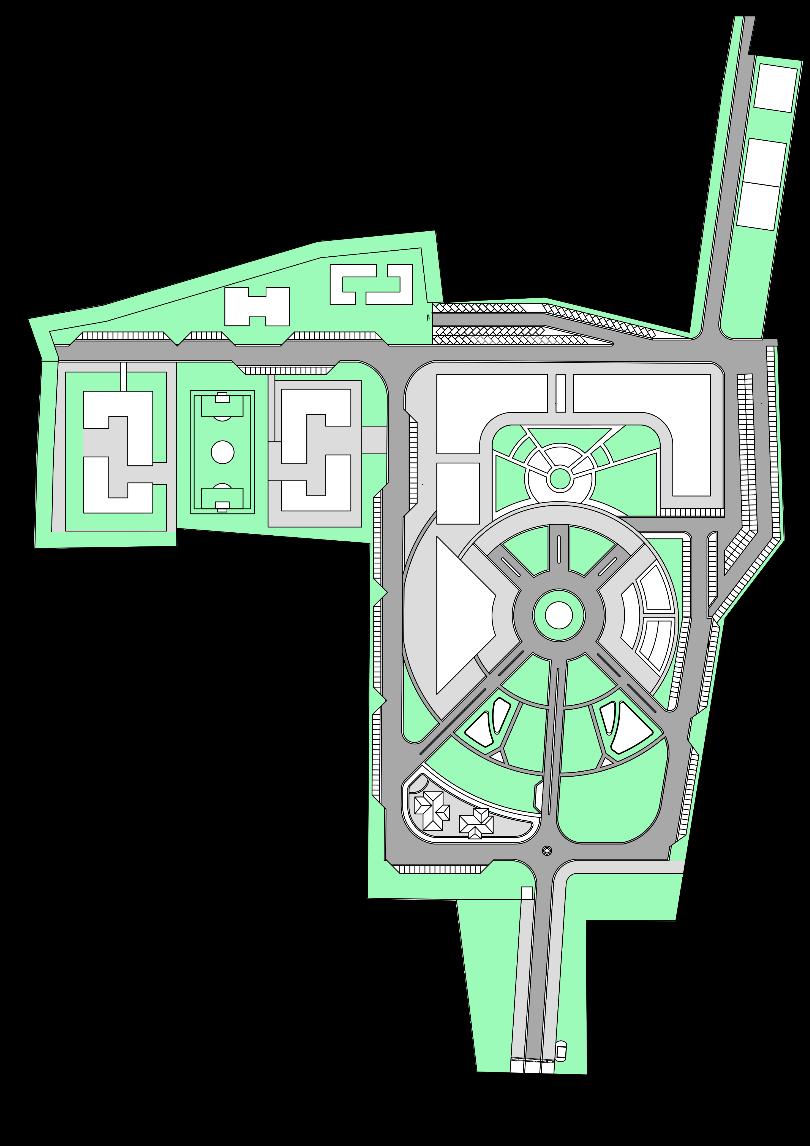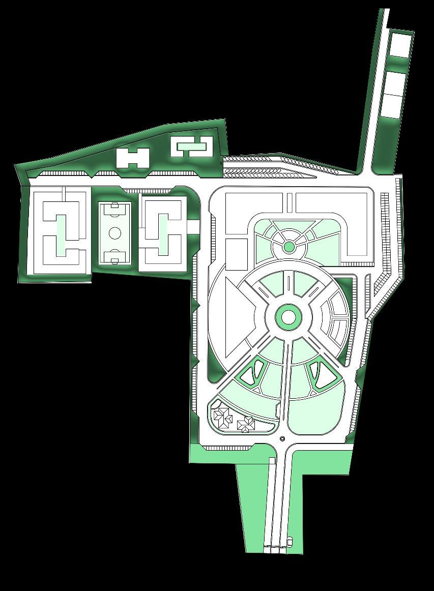 • Public engagement focus with main buildings at the periphery promotes transparency, accessibility, and a welcoming atmosphere, fostering community and inclusivity.
