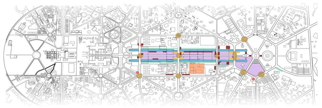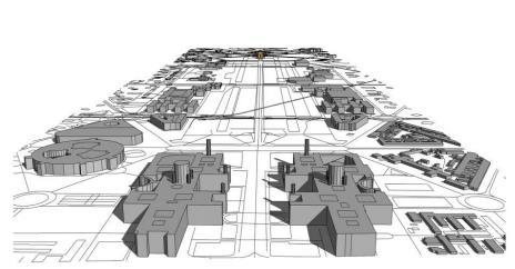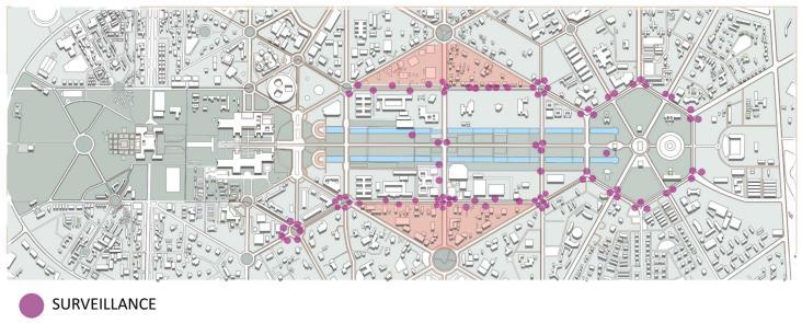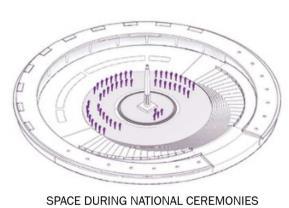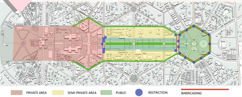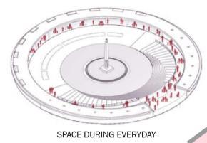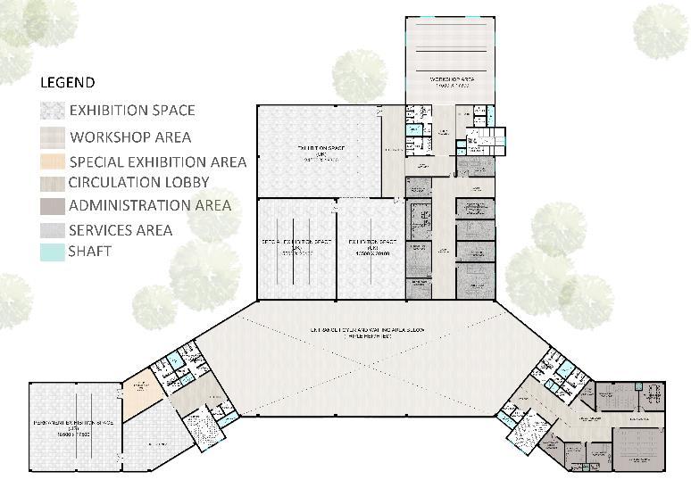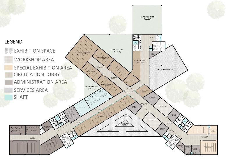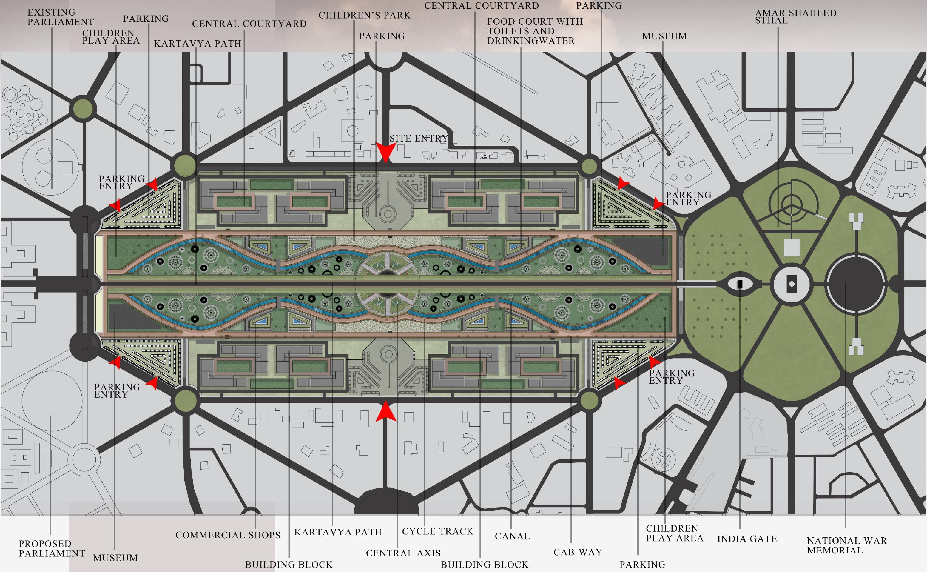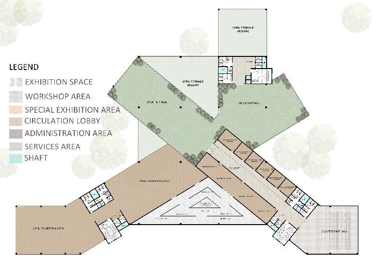 • Public engagement focus with main buildings at the periphery promotes transparency, accessibility, and a welcoming atmosphere, fostering community and inclusivity.