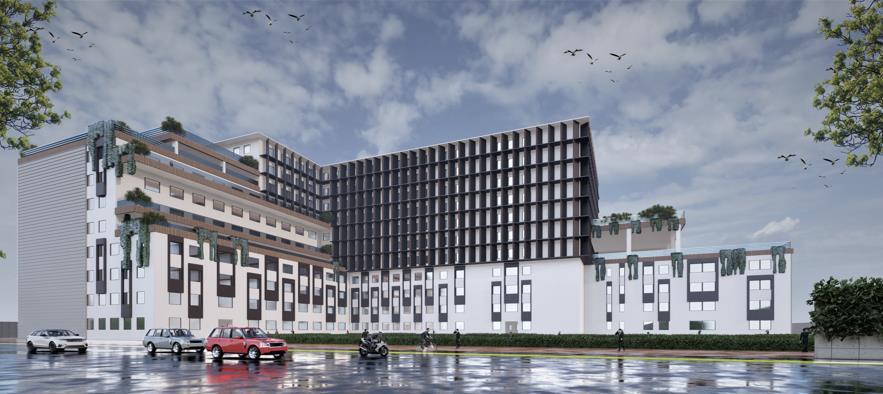 To create a hospital campus featuring a pioneering radial zoning approach, strategically organizing diverse blocks such as hospital, academic, admin, residential, hostels, staff residence, play area, etc