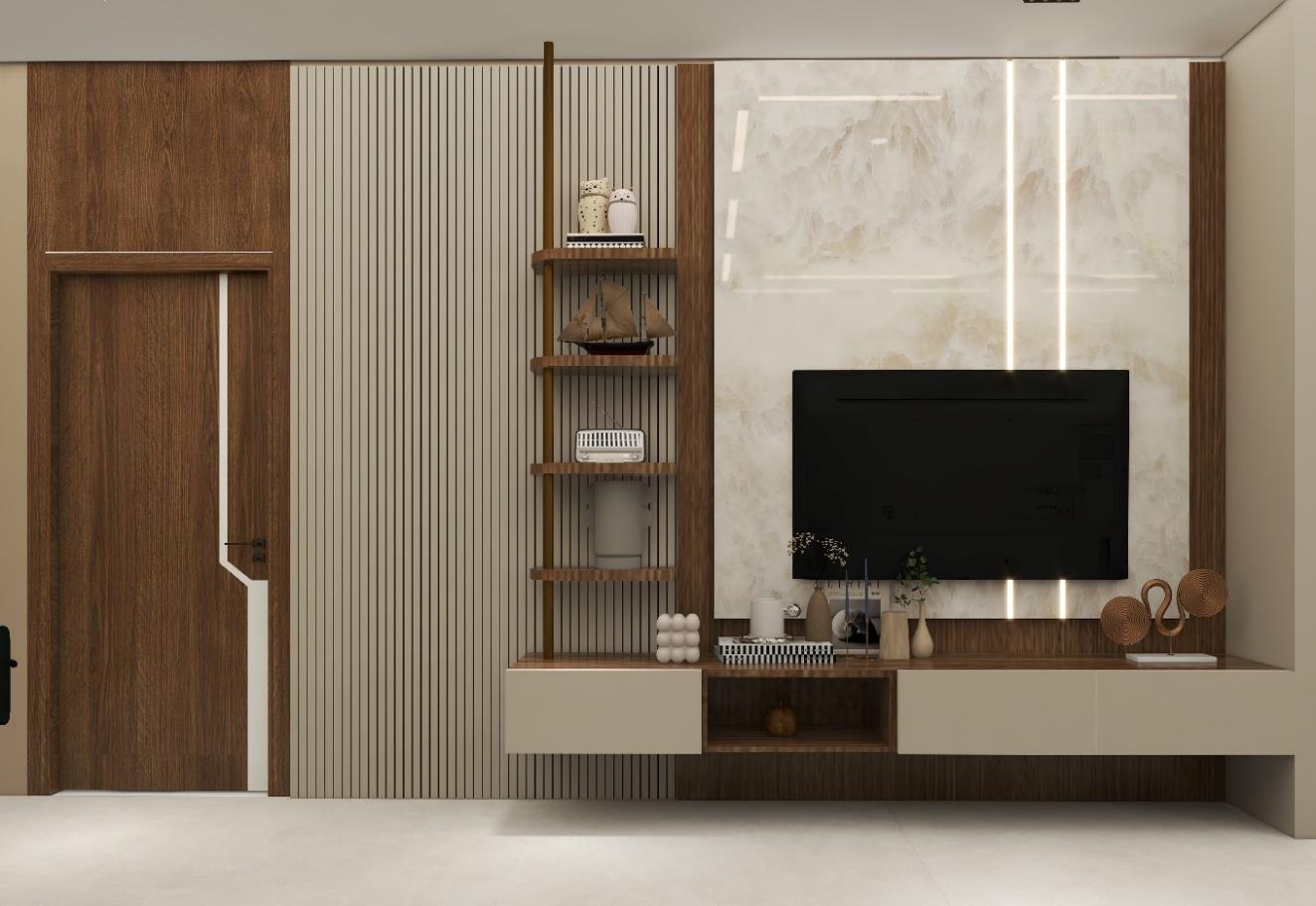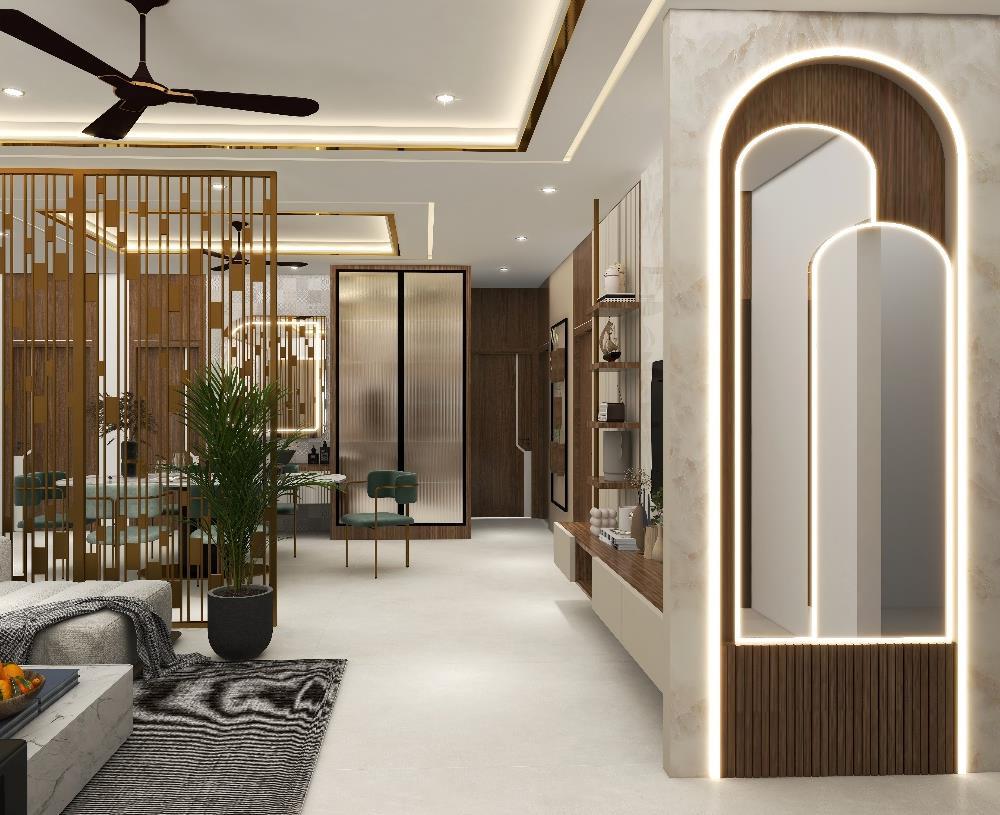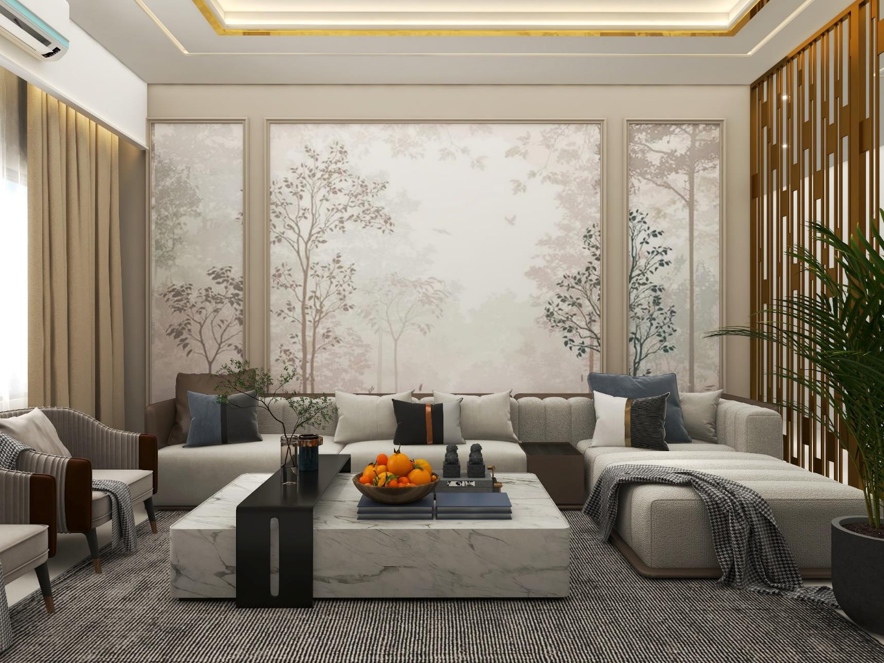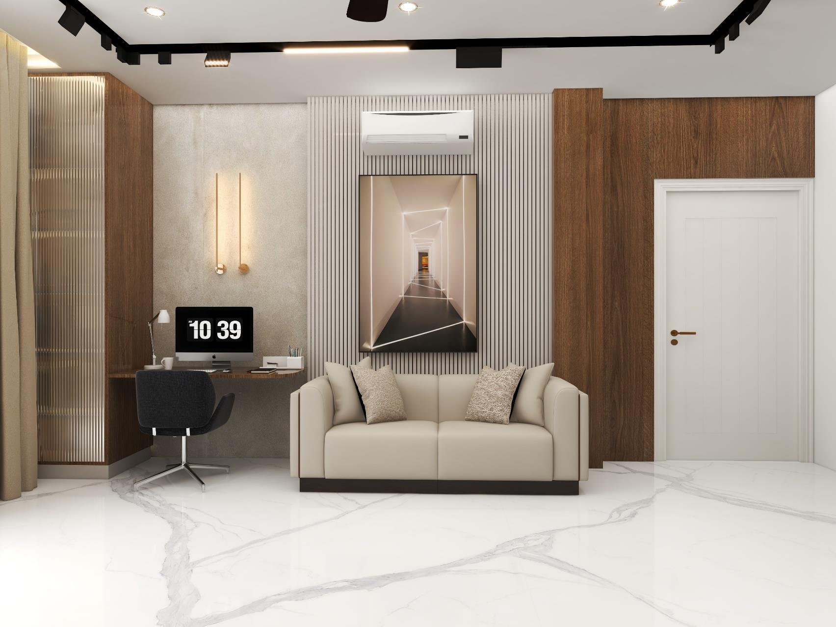 A Interior design of a living room, thought to give a special touch for every corner of this space Natural finishing's, such a Marble, Wood combined with neutral colors and luxury furniture creates a modern and, at the same time, cozy atmosphere. The interior of the house is fully functional and aesthetically pleasing enhancing the well-being of their occupants.