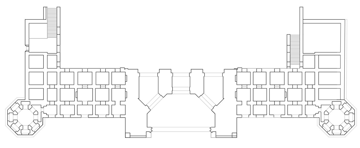 • Private spaces for student and staff residences are intentionally separated from public and service areas to ensure privacy. Accommodations for the academic community.
