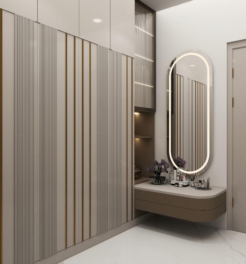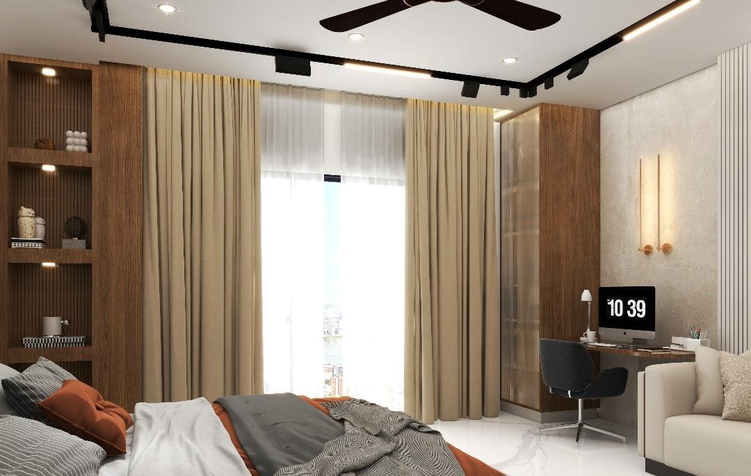 A unique architecture design, thought to give a special touch for every corner of this bedroom Natural finishing's, such a Marble, Wood combined with neutral colors and luxury furniture creates a modern and, at the same time, cozy atmosphere. The interior of the house is fully functional and aesthetically pleasing enhancing the well-being of their occupants.