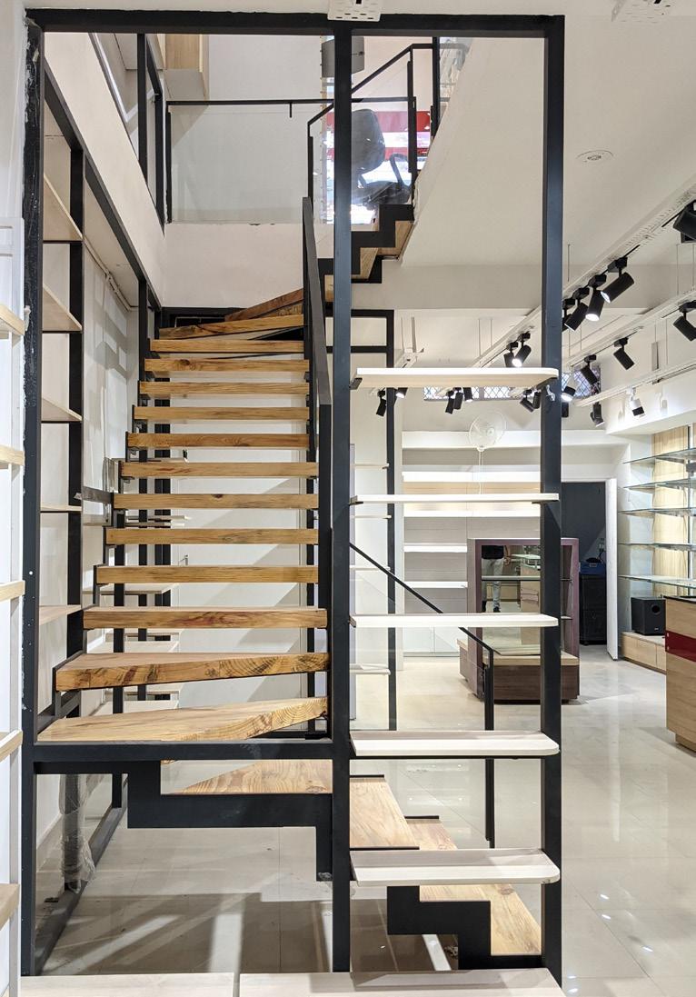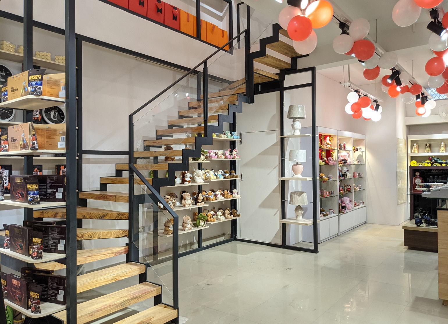 This retail space, spanning 1600 sqft across a basement and ground level, was designed for a prominent gift shop chain in India. The project’s stand-out feature is an elegant and inviting staircase that leads down to the basement level.