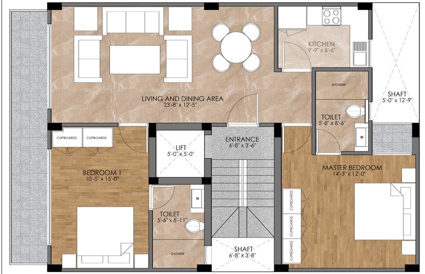 Designed and proposed an apartment building with a a flexible plan that can be adapted for both Residential and Commercial use.