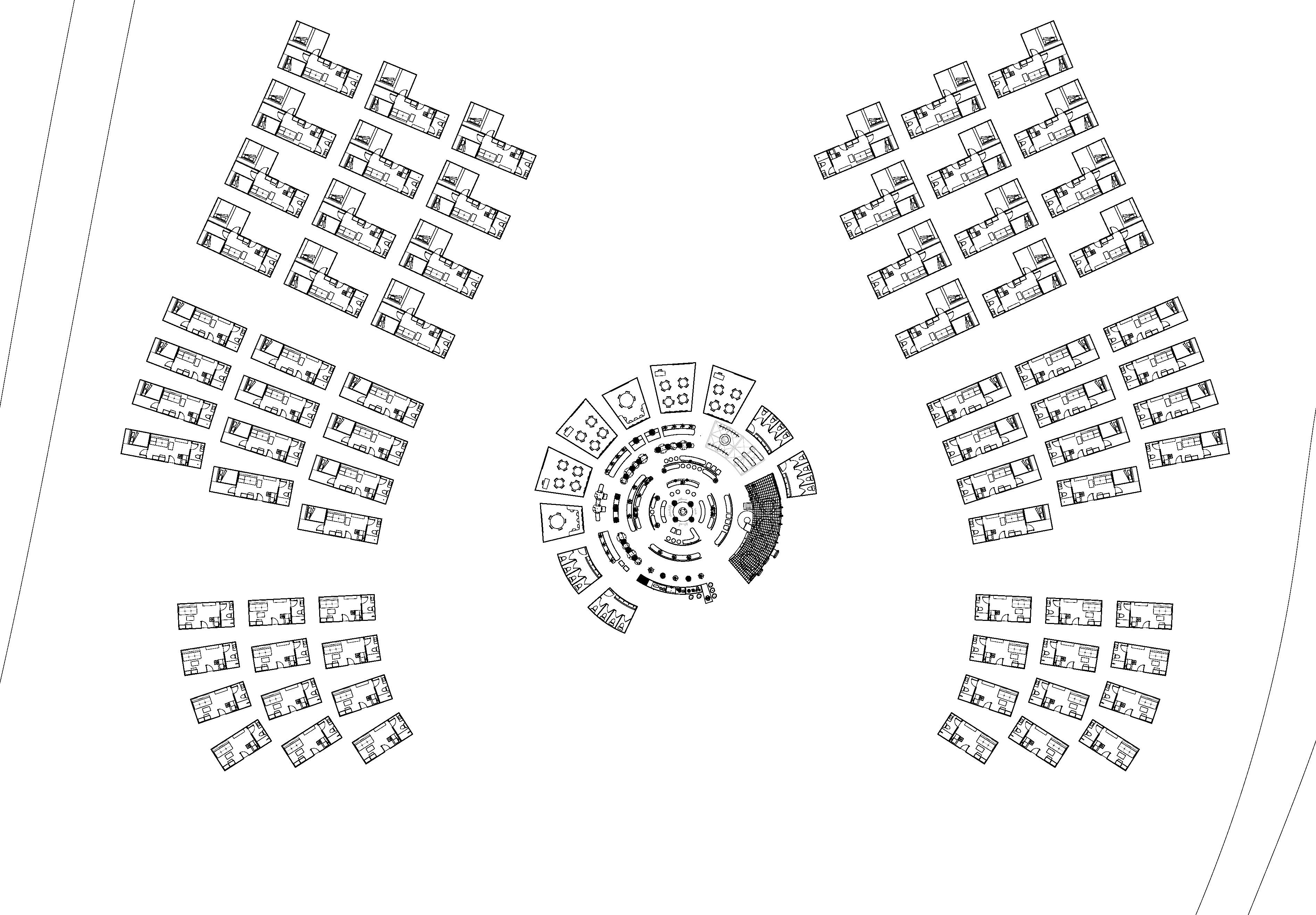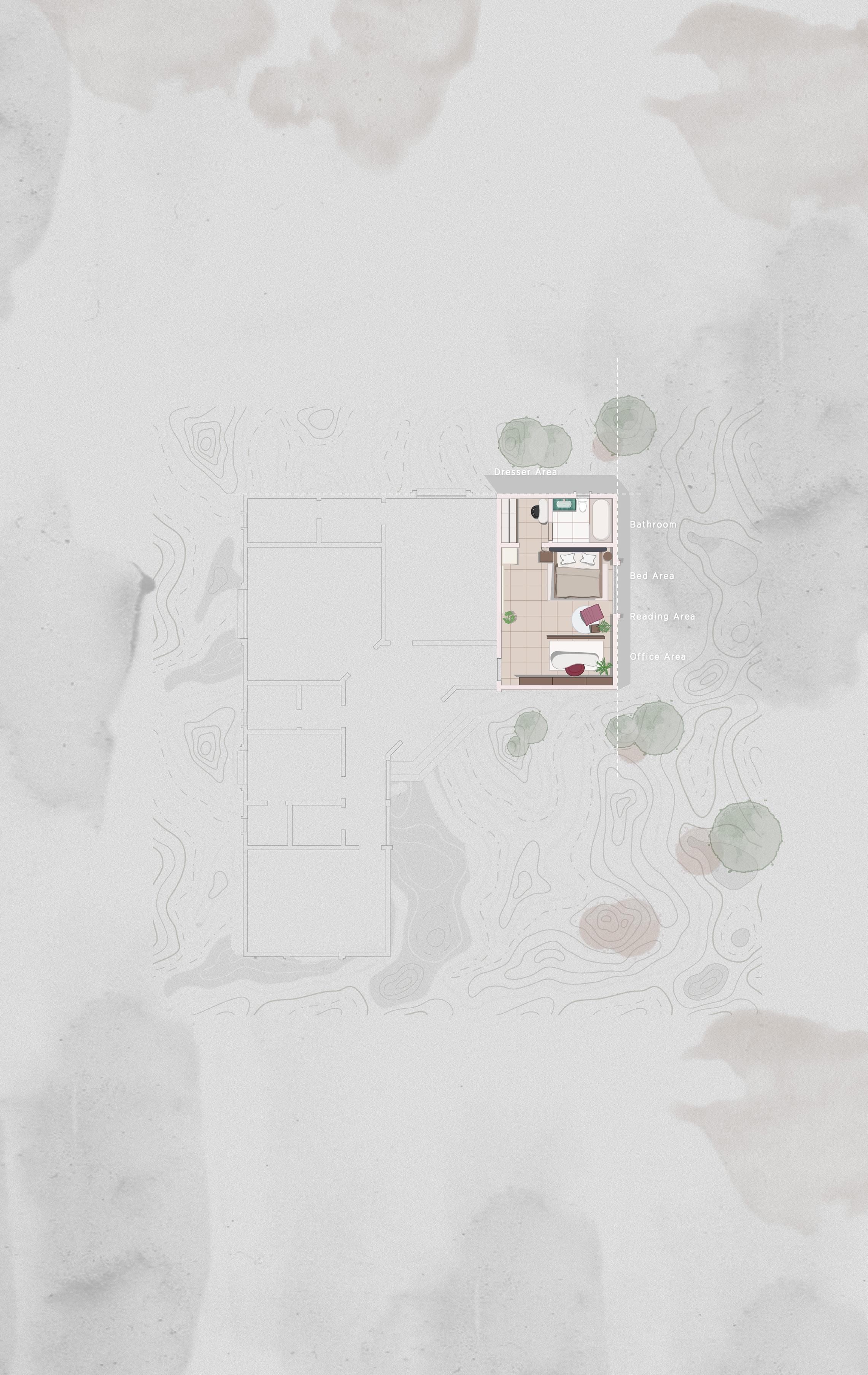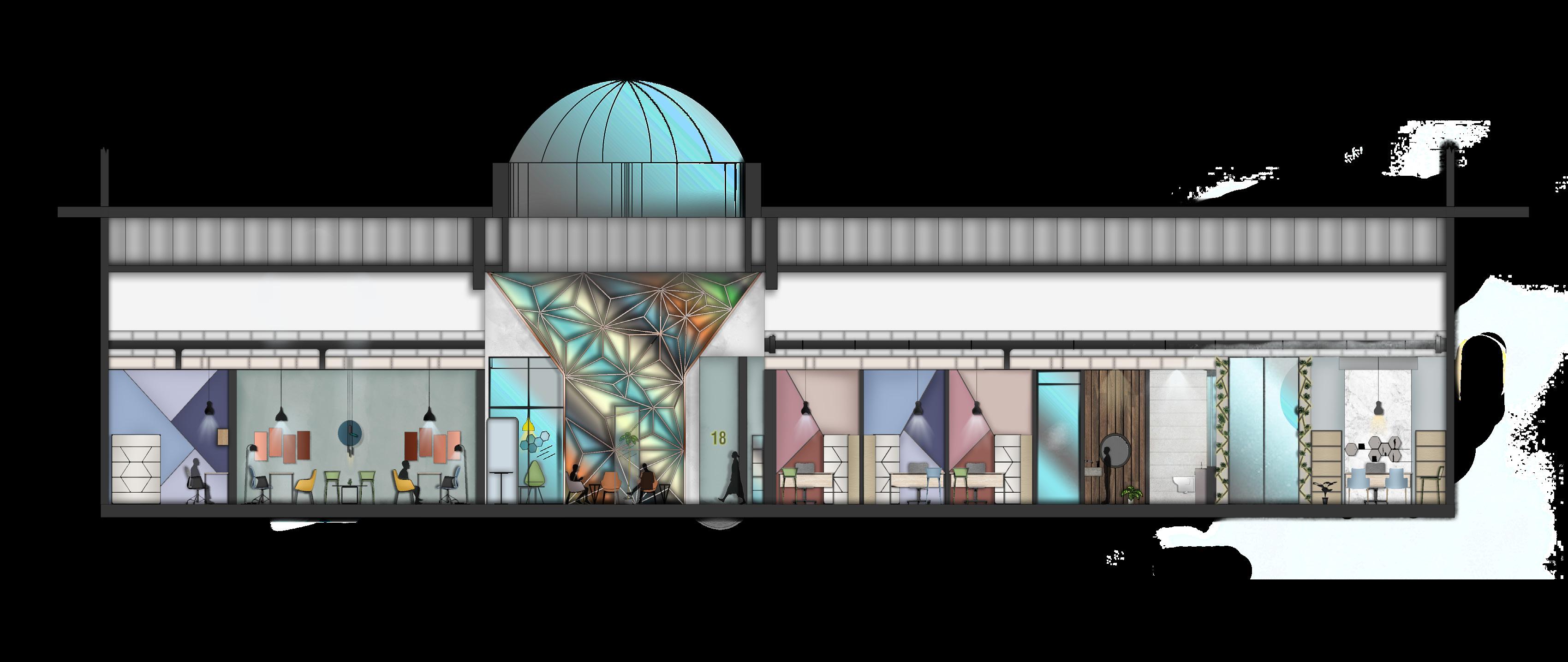 Besides the shelter units community has another functions to serve people in living a healthy life mentally and physically, the shelter contains a playground area, public cooking area, educational units, and a retail shop like experience zone, all of these functions are covered under a dome in the middle of the community for to the centre where people can gather and share there stories.