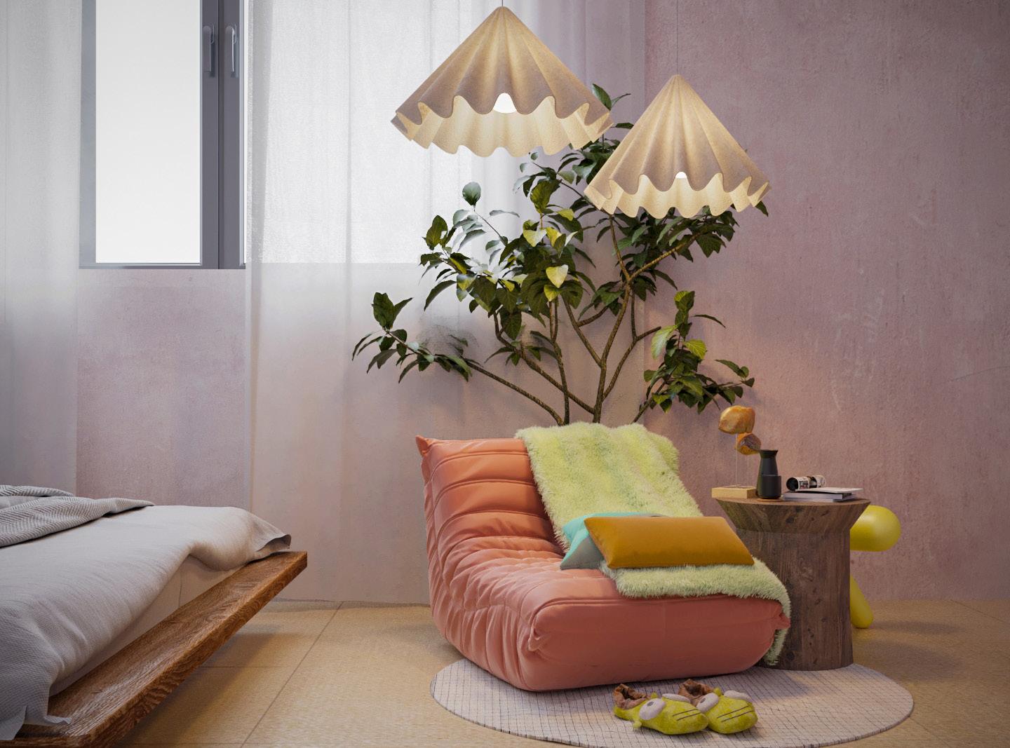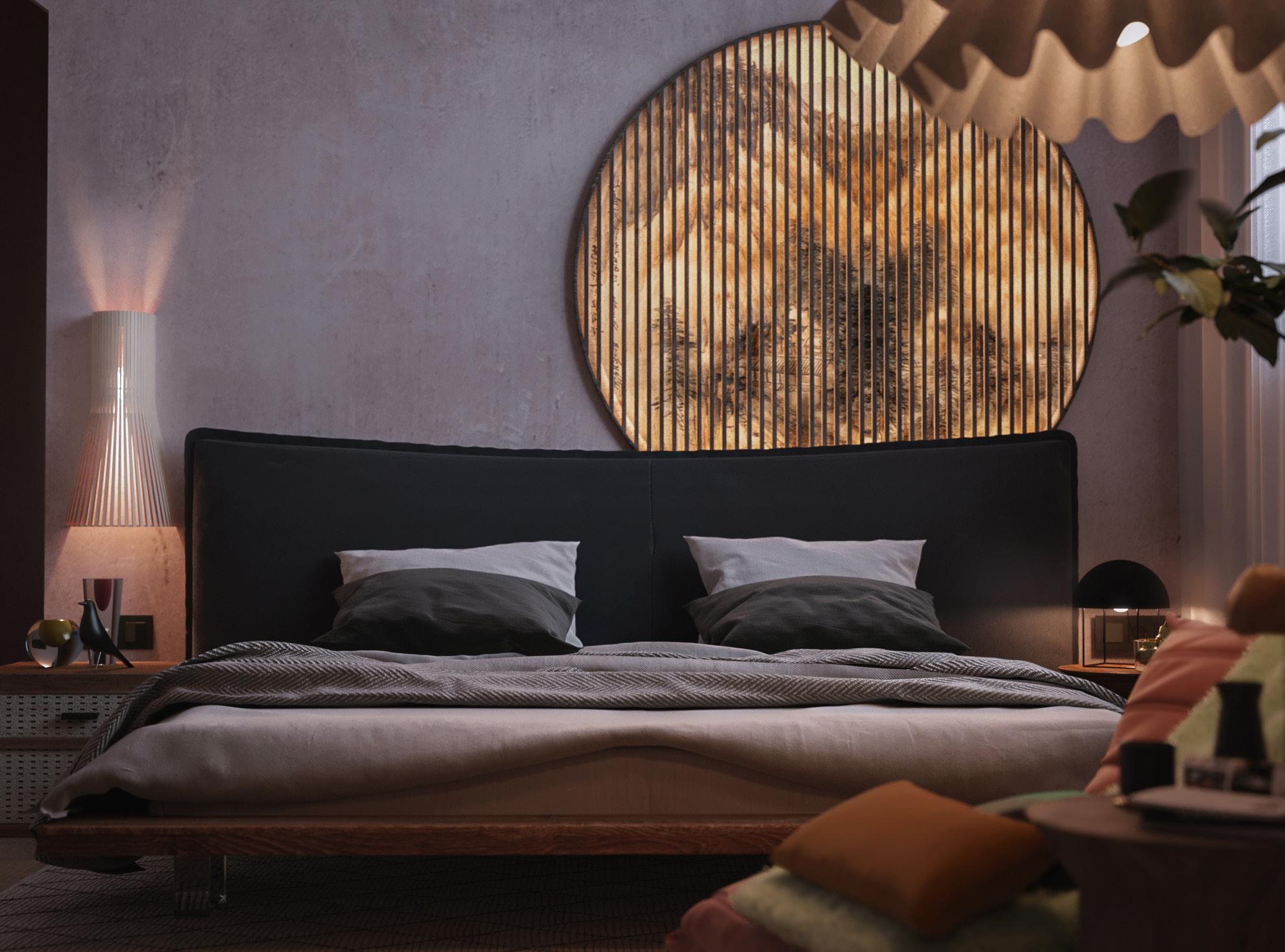 The client desired a sophisticated, one-of-a-kind room that reflected Japanese and Scandinavian influences, and these components were tackled through the use of a simple color palette and materials to achieve the client’s vision.