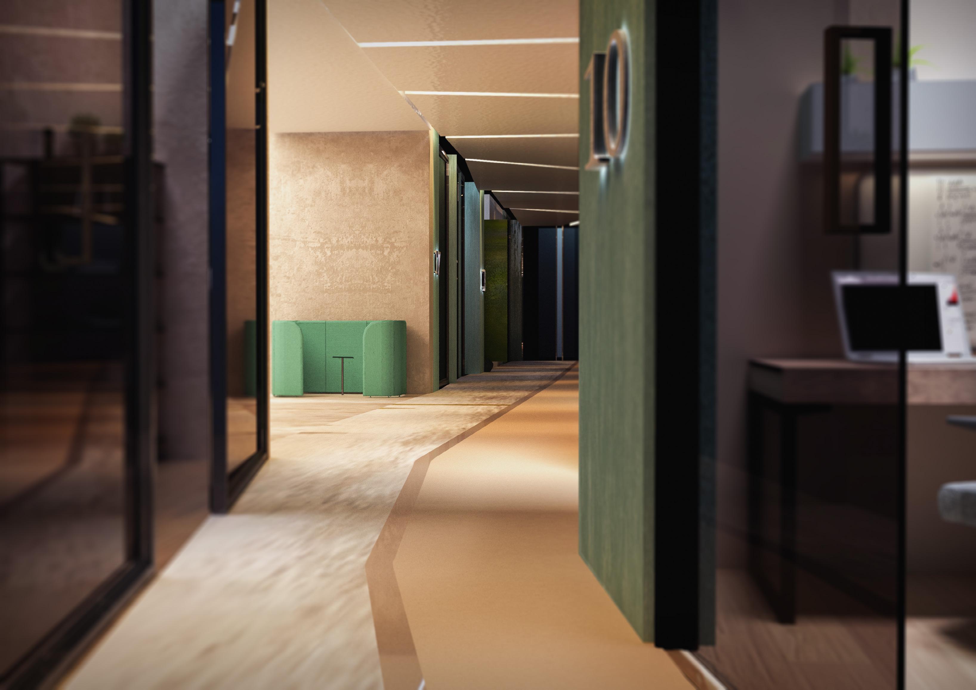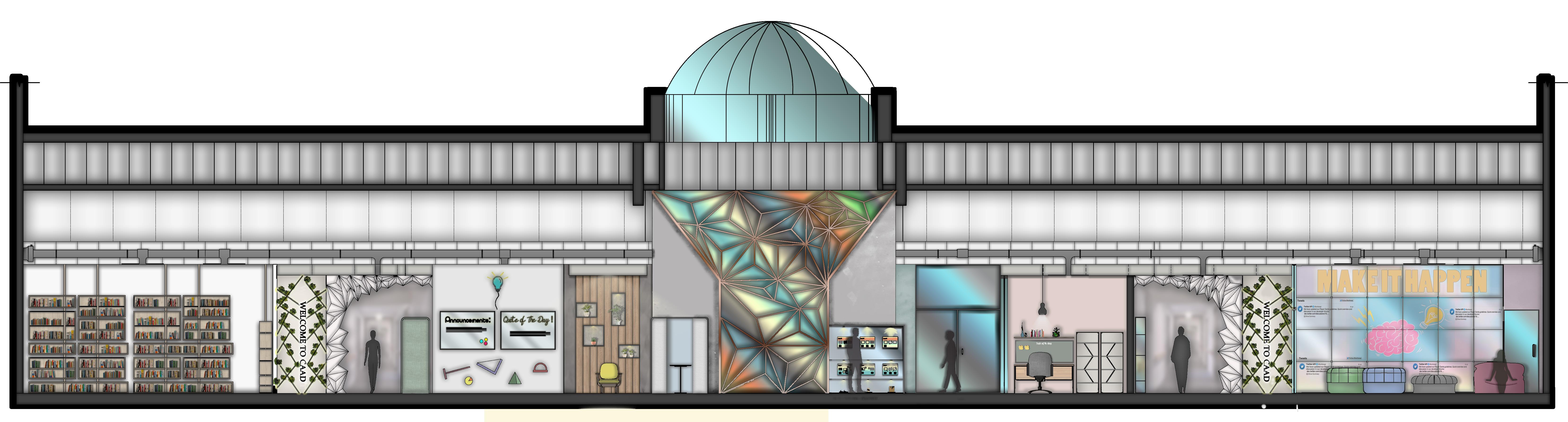 During this design project, I was inquired to redesign the offices area at Ajman University, and the design was inspired by the lines and hard edges of the nest, creating a better organization and a new space planning to the place with the use of pastel colors and natural materials throughout the entire design.