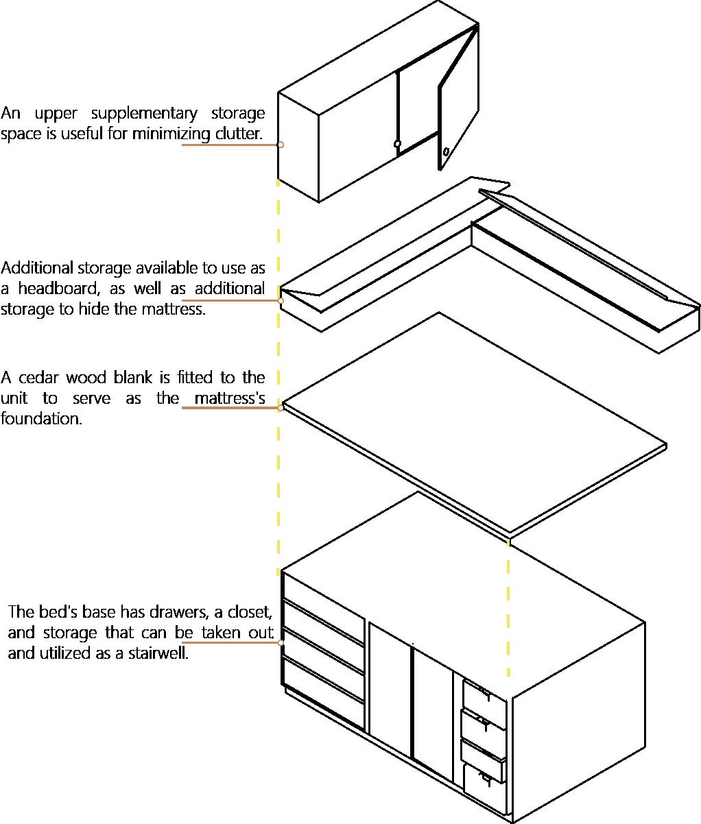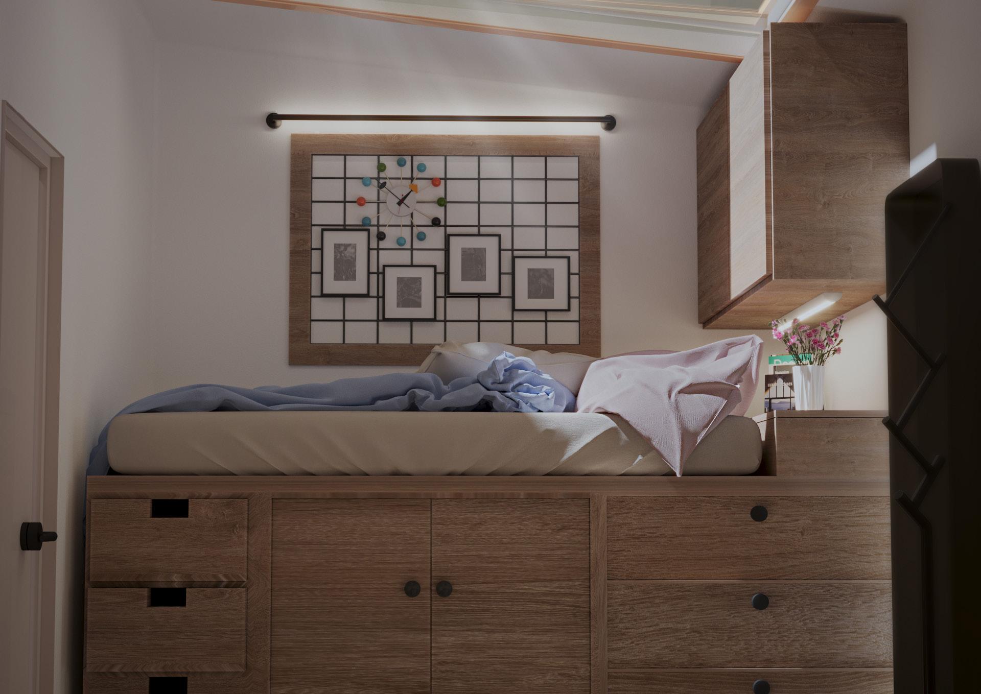 Additional storage available to use as a headboard, as well as additional storage to hide