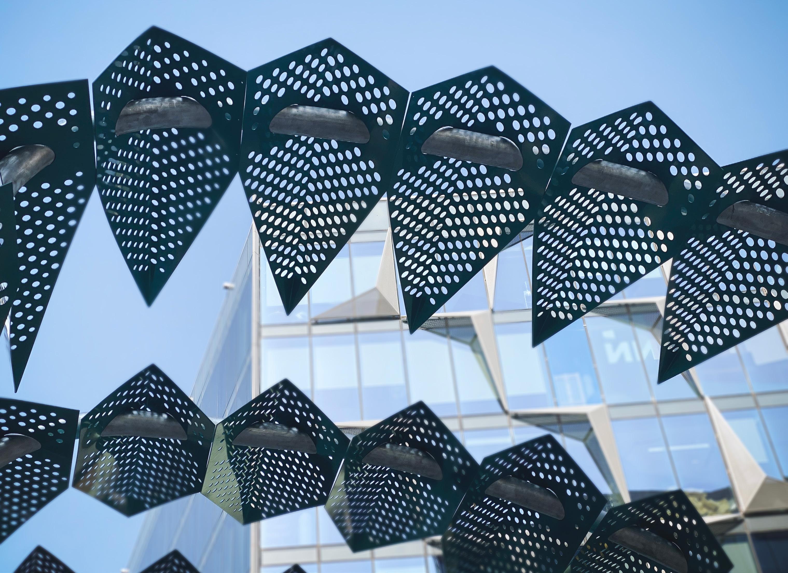 The structure was designed to resemble the way feathers are layered upon one another over the skeleton of the wings, resulting in a unique art installation.