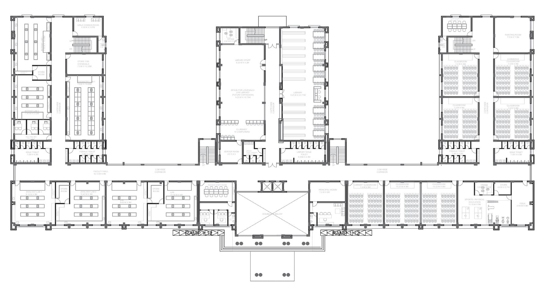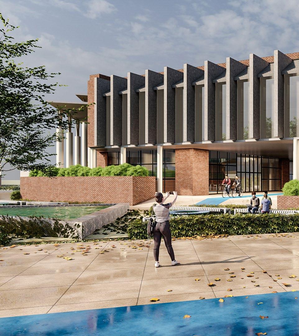 Open Amphitheatre is created in the courtyard formed which lead to the formation of central plaza and then a building mass is extracted to connect the Central plaza with the Entrance plaza. where people come together to enjoy the space.