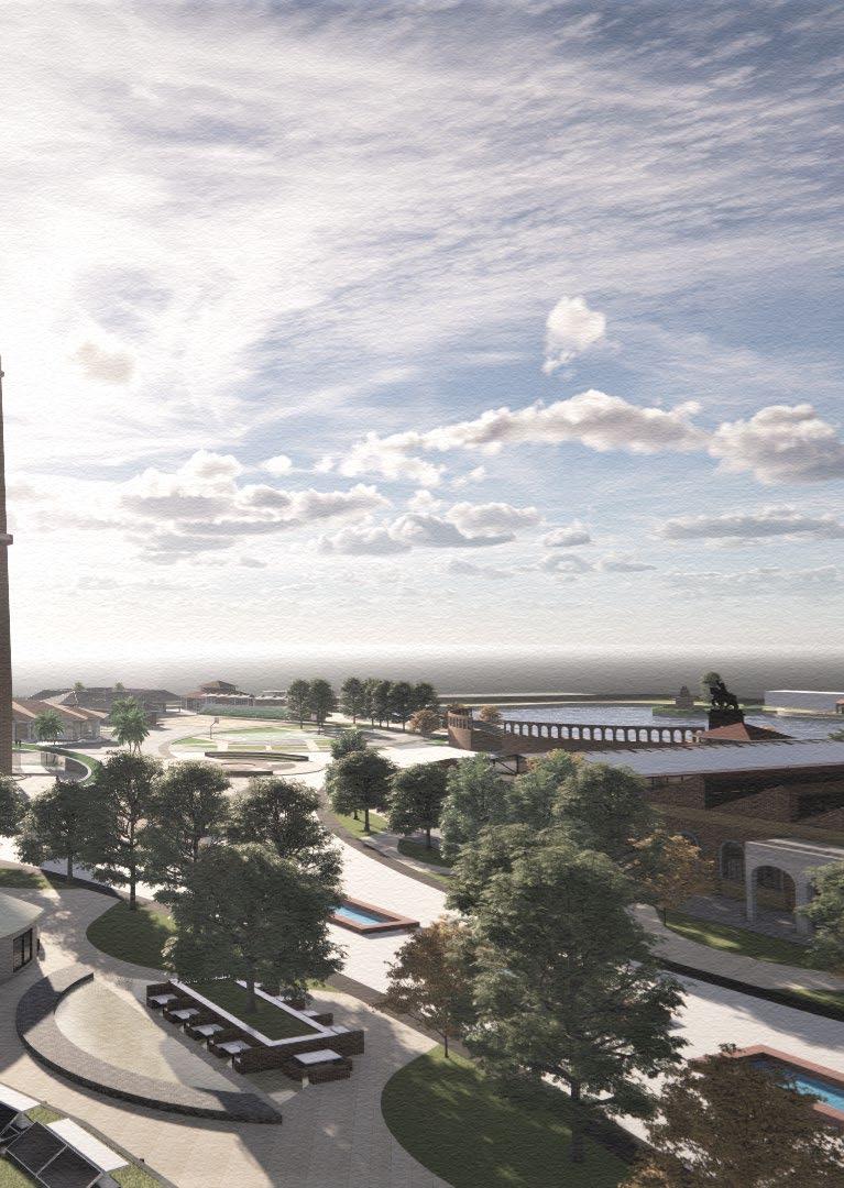 Two major axis is drawn passing through the chimney at right angle. along the axis multiple plazas are created which are connected by promenades that allow easy crowd movement and improve social life of the city. These promenades provides user to connect with historic buildings, food plazas, auditorium, cultural and sports facilities.