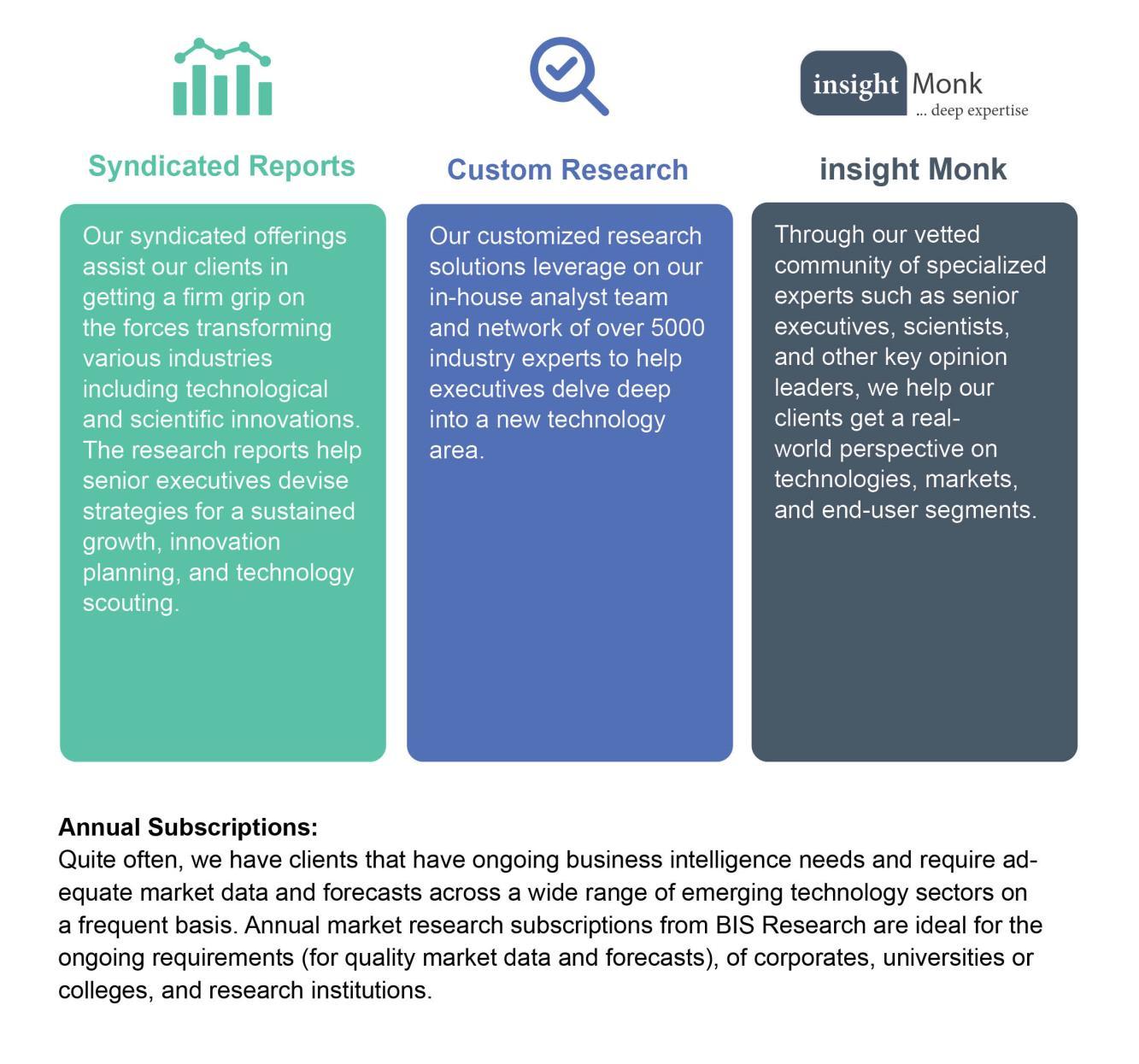 BIS Research is a leading market intelligence and technology research company. BIS Research publishes indepth market intelligence reports focusing on the market estimations, technology analysis, emerging highgrowth applications, deeply segmented granular country-level market data and other important market parameters useful in the strategic decision making for senior management. BIS Research provides multi-client reports, company profiles, databases, and custom research services.