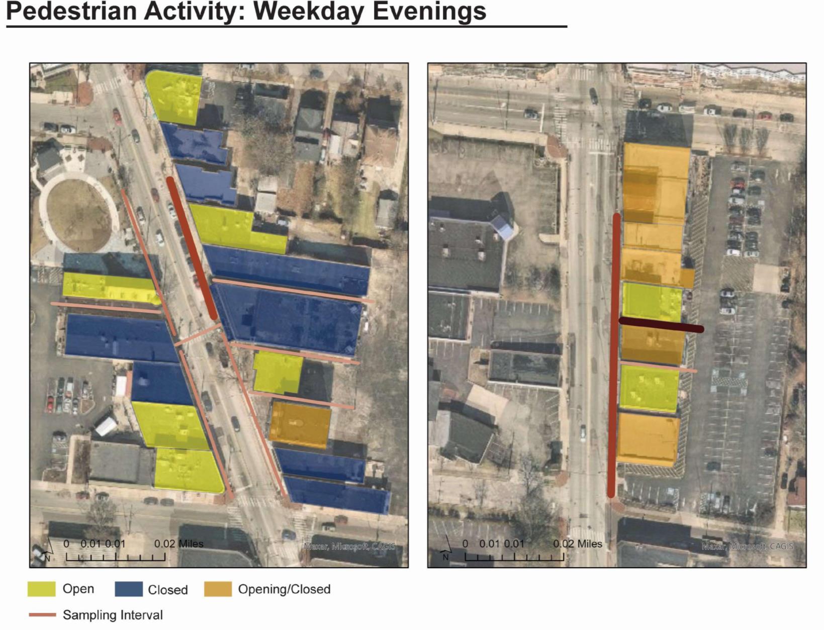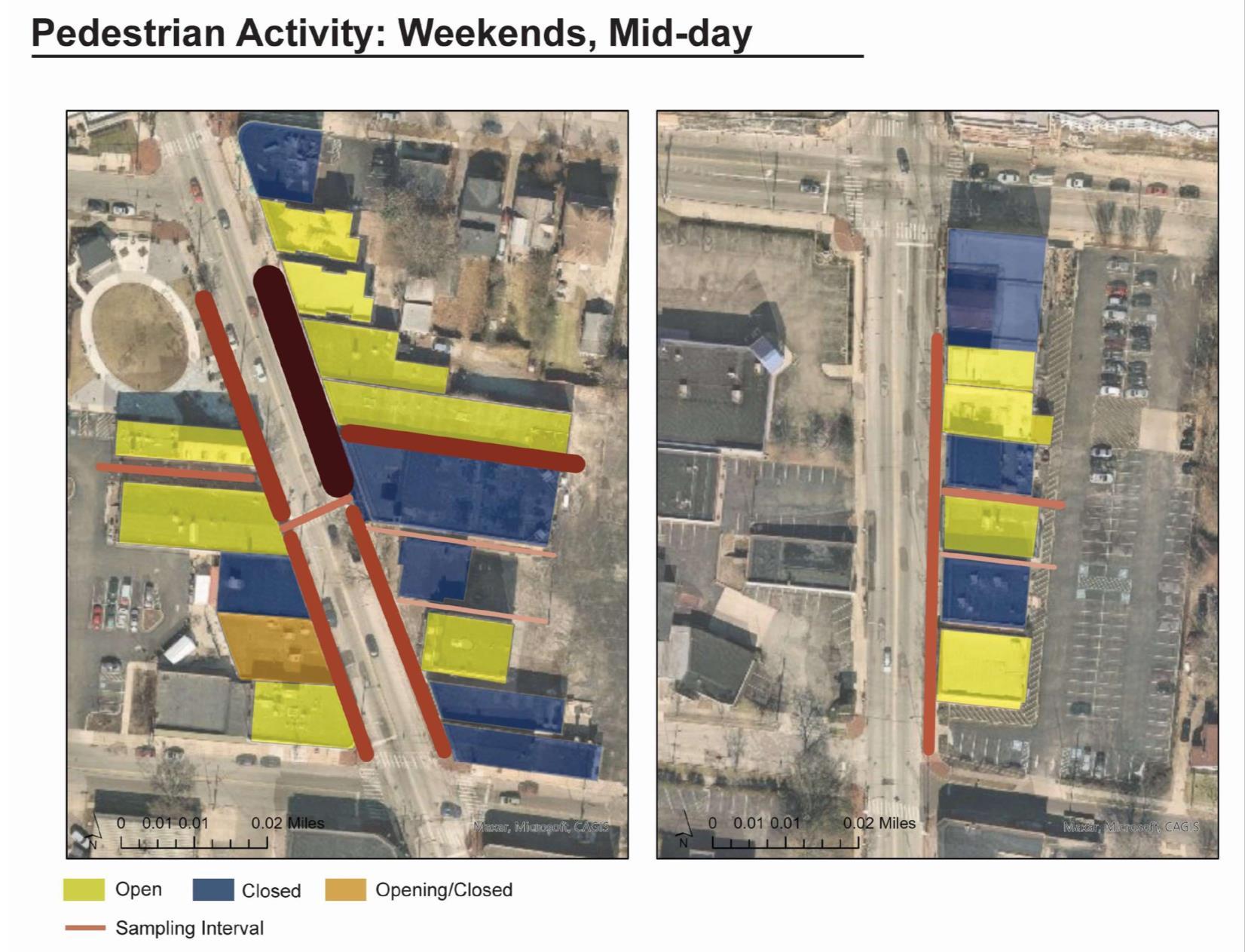 Pedestrian Count around the side walks and alleyways at different time of the day