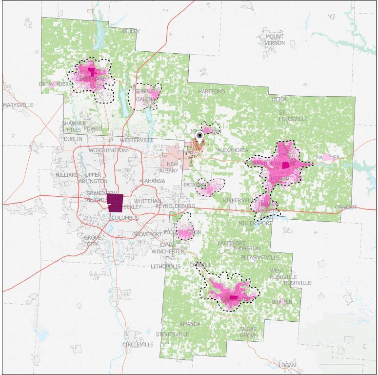 In early 2022, Intel Corporation announced their intention to build one of the largest chip manufacturing facilities of its kind in New Albany, OH. With a project of this magnitude underway, professionals in the region must try to ensure development takes place in a manner that is conscious of people, place, and prosperity. While any community would be excited to welcome the newfound opportunities that come with such massive economic development, it is important to consider the preferences of the surrounding counties that will now have to wrestle with new growth and the obstacles that come with it. This plan for the region envisions a gathering of thriving communities where people are at the forefront, places are vibrant and inclusive, and prosperity is a shared and sustainable reality Guided by three core values of equity, sustainability, and resiliency, this plan is a commitment to building a future that uplifts every person and safeguards the well-being of their community and environment.
