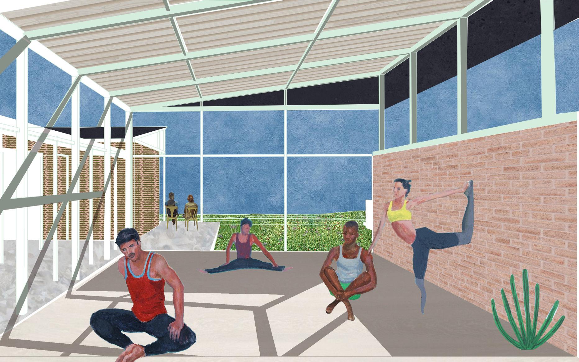 A terv központjában egy mesterségesen létrehozott vízfelület áll, amely a szobor elé van pozícionálva. Ezt veszi körül az épület, melyet egy verandás “keringő” választ el a medencétől. A házban helyet kap jógaterem, öltözők, egy kávézó, könyvtár. Az épületben alkalmazott CLT szerkezetek környezetbarát és fenntartható építési anyagok és minimálisra csökkentik az építkezéssel járó hulladékot.