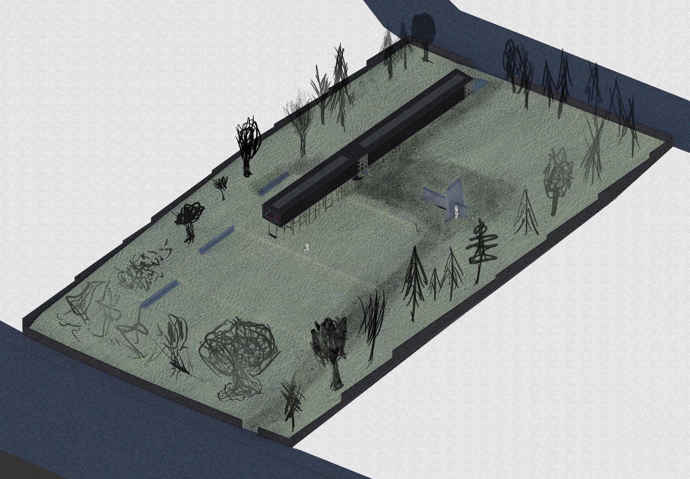 A koncepció a többszöri helyszínbejárás és az ott töltött idő alapján alakult ki. Azt gondolom, hogy a telek a jelenlegi lokációja és állapota hívogató lehet a legtöbb ember számára, amennyiben megnyitja kapuit. Éppen ezért egy olyan infrastrukturális elemet terveztem, amely kiszolgája a telekre érkezők igényeit.