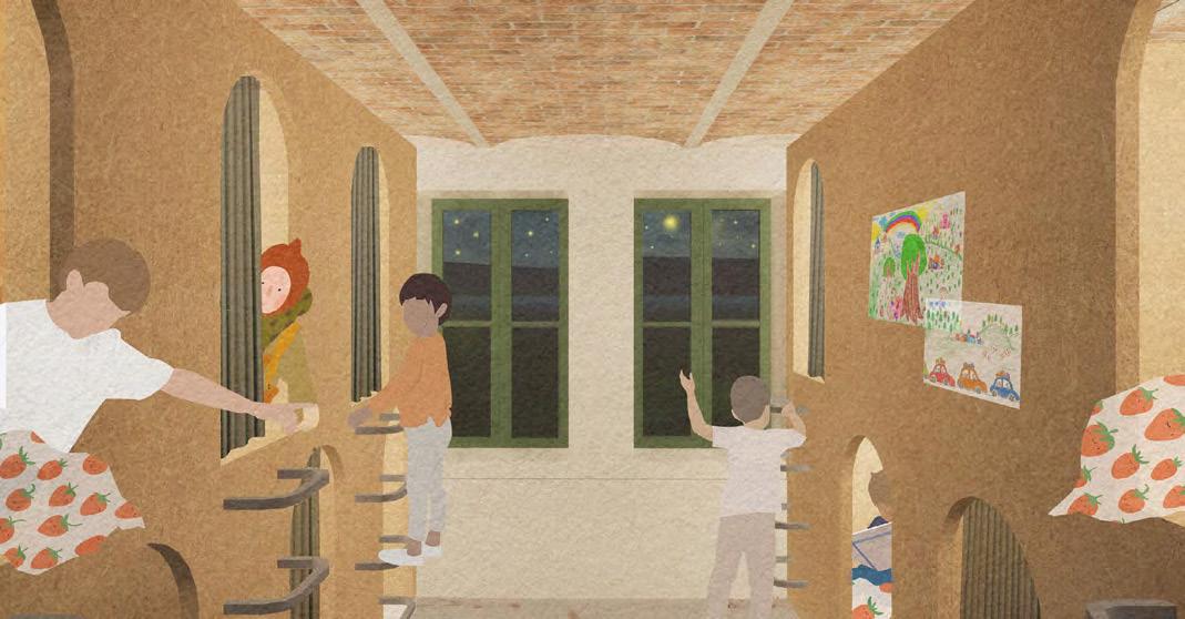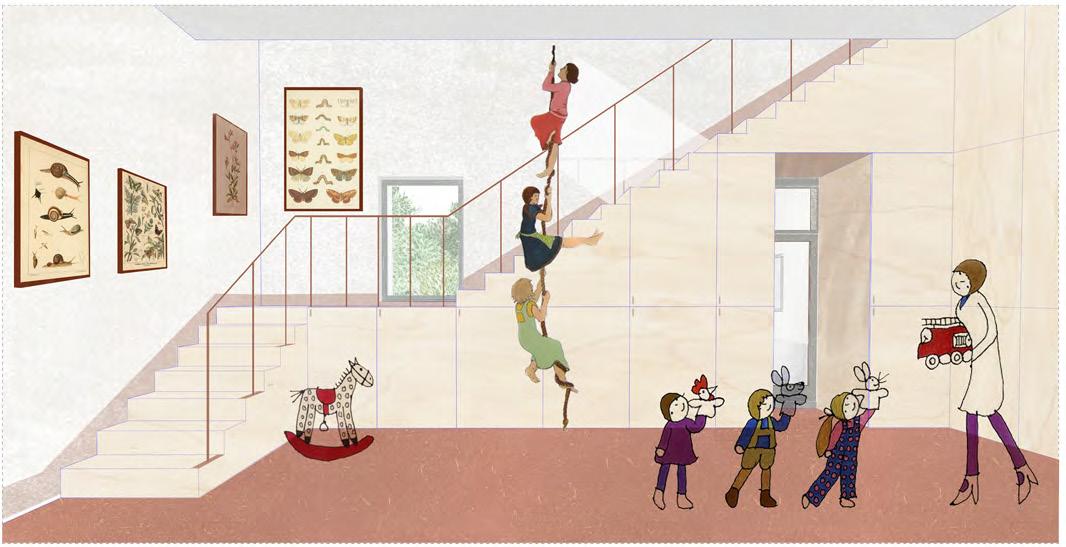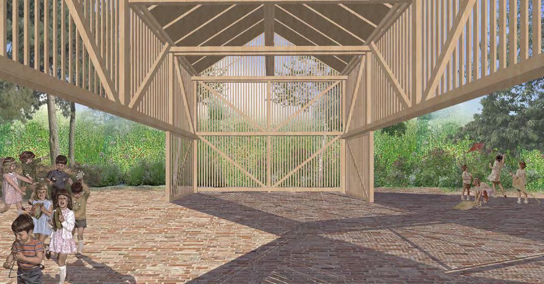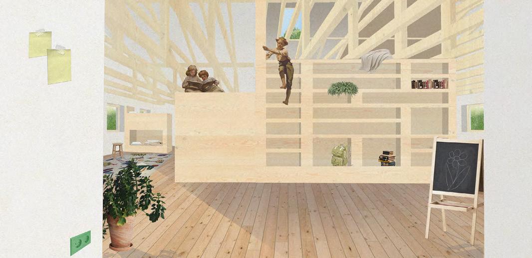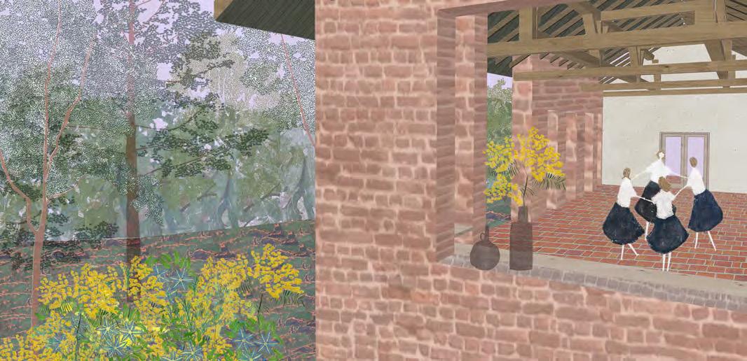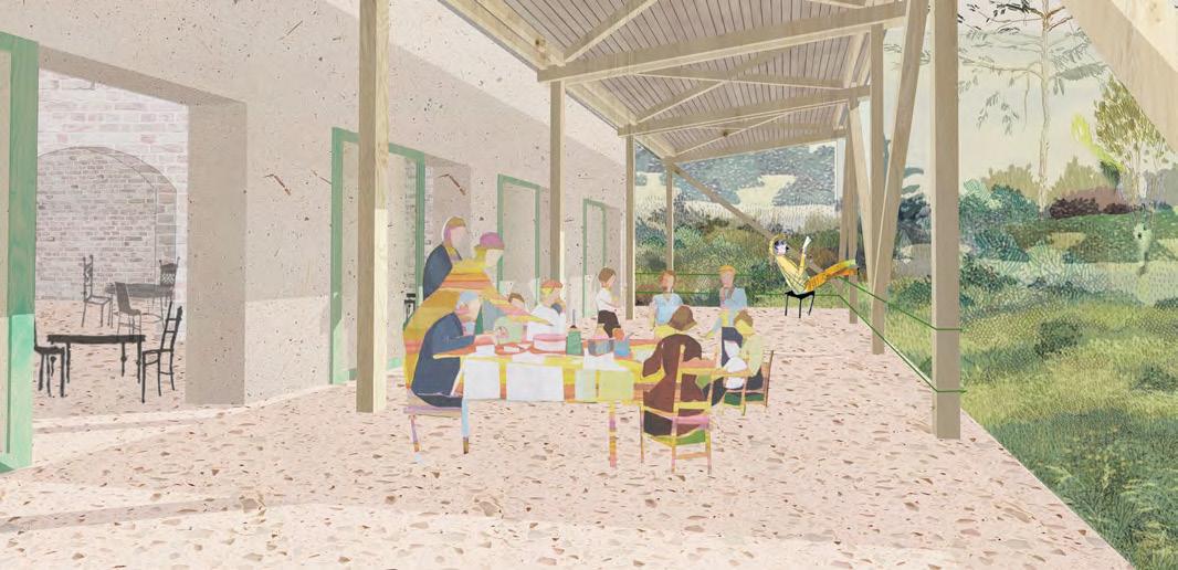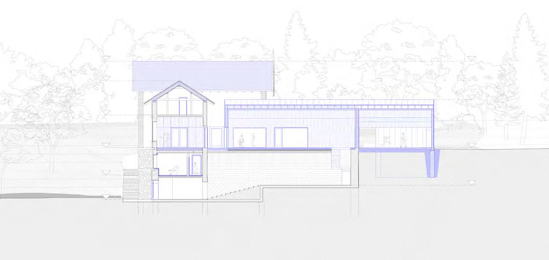 A műemlék átalakítása során az épület értékeit nem a megjelenés korhű megőrzésében, hanem a villaépület hajdan jól működő térhasználatában határoztuk meg. A gyermek-otthonná alakítás során elvesztett fedett-nyitott tér visszaemelése az aktív tanulás, a kertben folyó fenntarthatóságra nevelés és erdőpedagógia helyszíneit bővíti ki. Az oktatási program a természethez és a nomád életmódhoz közelítést, kézművességet és a szabad játékot helyezi a fókuszba. Az erdei iskolát egy szabadon kibérelhető, zarándoknak, kirándulóknak, csoportoknak dedikált hozzáépítés egészíti ki, ami a terület közelében haladó túraútvonalak felé nyit. A különböző célcsoportok igényeihez illeszkedő komfortfokozatú szálláshelyek rendelődnek, amik szabadon hagyják az épületegyüttes diverz felhasználásának lehetőségét. A városi kirándulókat elkülönülő kültéri közösségi hely, bivakolási lehetőség szólíthatja meg, amire a telek felső, az erdőnek átadott területe szolgál.