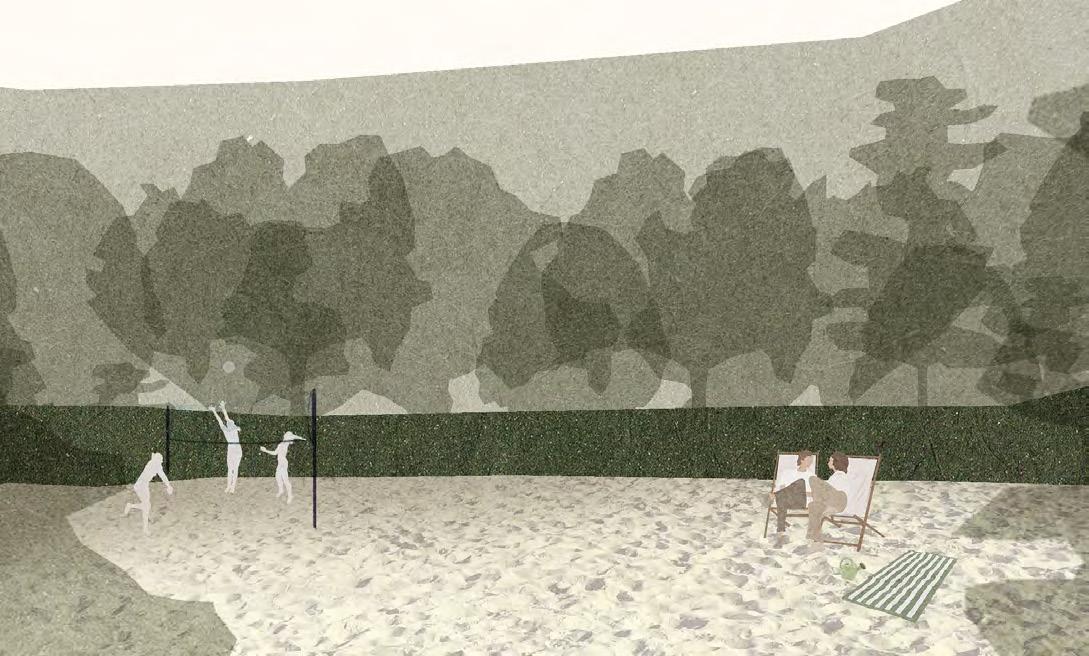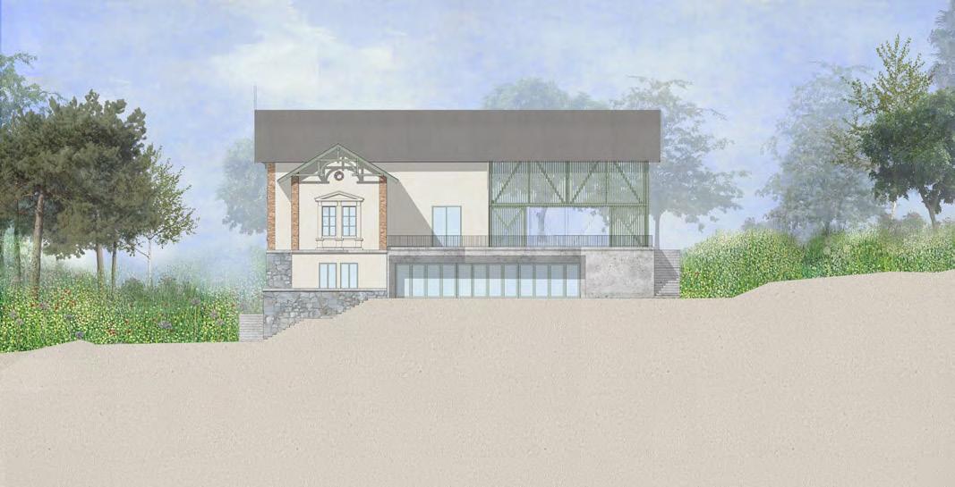 A villa egyik legnagyobb erőssége az azt körülölelő kert, melyet parkerdővé alakítanék. A jelenlegi formájában is vonzó kiszáradt tavat, azaz az Isten szemét megőrizném jelenlegi víztelen formájában, tekintettel a nehézkes vízügyi megoldásokra és a tisztásként funkcionáló terület atmoszférájára. A hatást fokozván a teknőt homokkal tölteném fel, így az sport és táborhelyszín, illetve balesetmentes tűzrakóként tudna működni. A programom szerint az épület szállásként, zarándokszállásként, foglalkozások helyszíneként, valamint egyéni és csoportos alkotótevékenységek helyszíneként képzelem el. A házat eredeti tömegében megőrizném, ahhoz új épületet nem építenék és csak apró részleteken változtatnék. A természetesen felújítandó történelmi nyílászárók mellé az épület zártságát oldandó új megközelítéseket nyitnék, ügyelve az esetlegesen párhuzamosan zajló eseményekre.