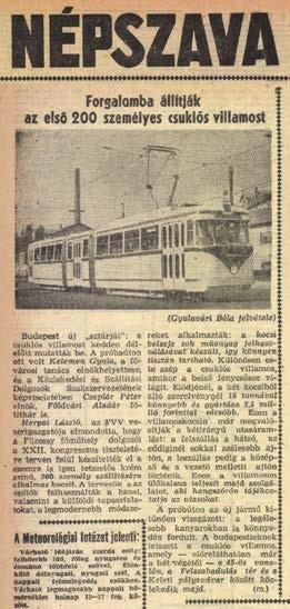 Forgalomba állítják az első 200 személyes csuklós villamost. (1961. 10. 18). Népszava, 1.
