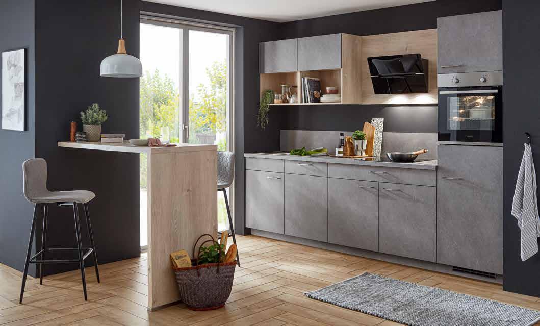 individuell planbar MODERNE KÜCHEN: hochwertige KÜCHENKOMBINATION STONEART Fronten, Arbeitsplatte und Nischenverkleidung in Basalt Taupegrau Nachbildung | Korpus in Eiche Montreal Nachbildung. Maße ca. 360+140 cm. JUBILÄUMSPREIS 9.998.5.498 .ohne Deko HAUSPREIS INKLUSIVE ELEKTROGERÄTE JUBILÄUMSPREIS 10.867.6 . 998 .ohne Deko HAUSPREIS WINKELKÜCHE NORDIC Fronten in Lack, Schiefergrau matt | Korpus in Schiefergrau | Arbeitsplatte in Vintage Oak Nachbildung. Maße ca. 335x245 cm. individuell planbar Kühlgerät * F A G INKLUSIVE ELEKTROGERÄTE Geschirrspüler * E A G Geschirrspüler Progress PV1548 (E)* 4*-Kühlautomat Progress PK1254 (F)* Einbauherd Progress PHN13002X (A)* Glaskeramik-Kochfeld Progress PES6001E Einbauspüle Franke Strata STG 614-78, Onyx Wandhaube Elica LOL BL/A/60 (A)* Geschirrspüler Progress PV1548 (E)* 4*-Kühlautomat Progress PK0813 (F)* Hochbaubackofen Progress PBN13002X (A)* Glaskeramik-Kochfeld Progress PES6001E Edelstahl-Einbauspüle RODI Okio Line 85 Deep Design-Dunstesse Elica WISE 60 BK (B)*
