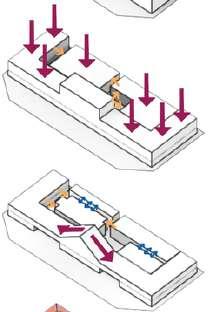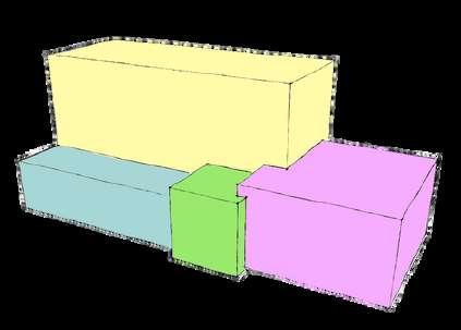 Il ustrates the evo ut on of a structure through d fferent spat a and form organizat ons These inc ude “Space Linked by a Common Space ” where areas are grouped based on function and accessib l ty; “Subtractive Transformation,” which refines the init al concept to better fit the typo ogy; and “Clustered Organization,” which groups spaces close y for the fac l ty’s benefit.