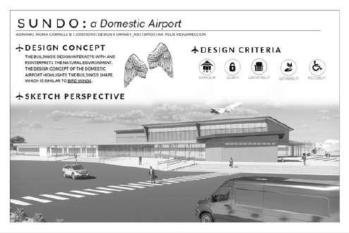 "SUNDO" is a local proposed domestic airport in the Philippines; this design concept draws inspiration from the shape of a graceful flight of birds.
