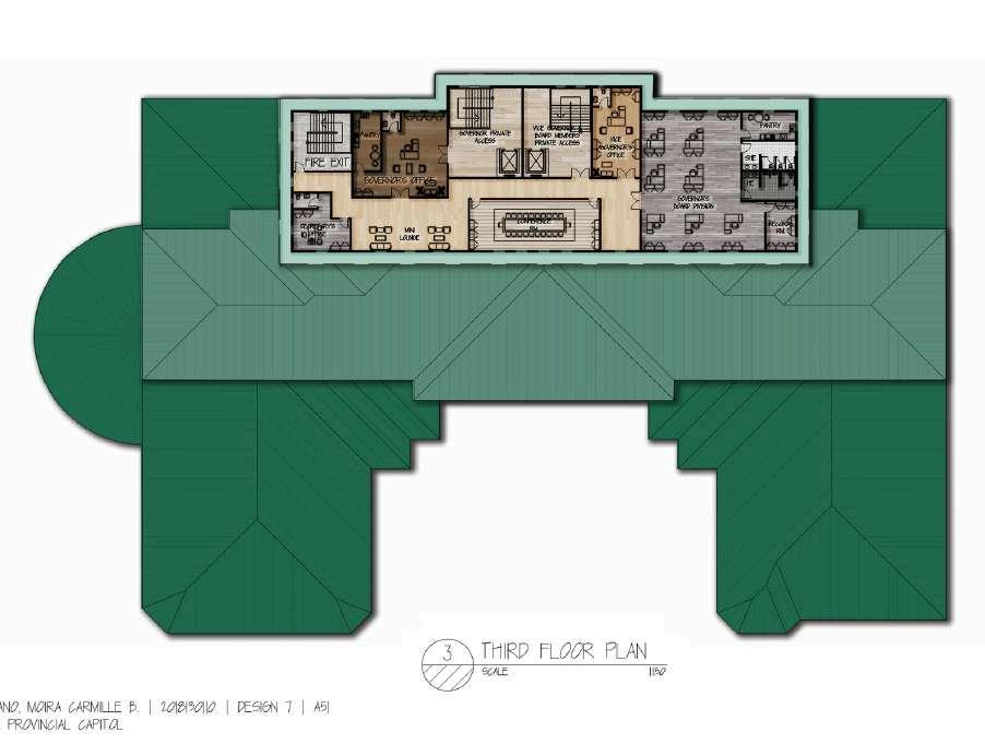 The design proposal for the Provincial Capitol represents an envisioned redevelopment of the current structure situated in Abra Province, Northern Luzon. This proposed plan emphasizes a Neoclassical frontage, underscoring its classification as an institutional building. Furthermore, it suggests the integration of woven dried Nipa palm leaves into the existing roofing material, serving as a means to preserve Abra's cultural heritage. The meticulous arrangement of its floor plan was carefully evaluated to ensure efficient utilization.