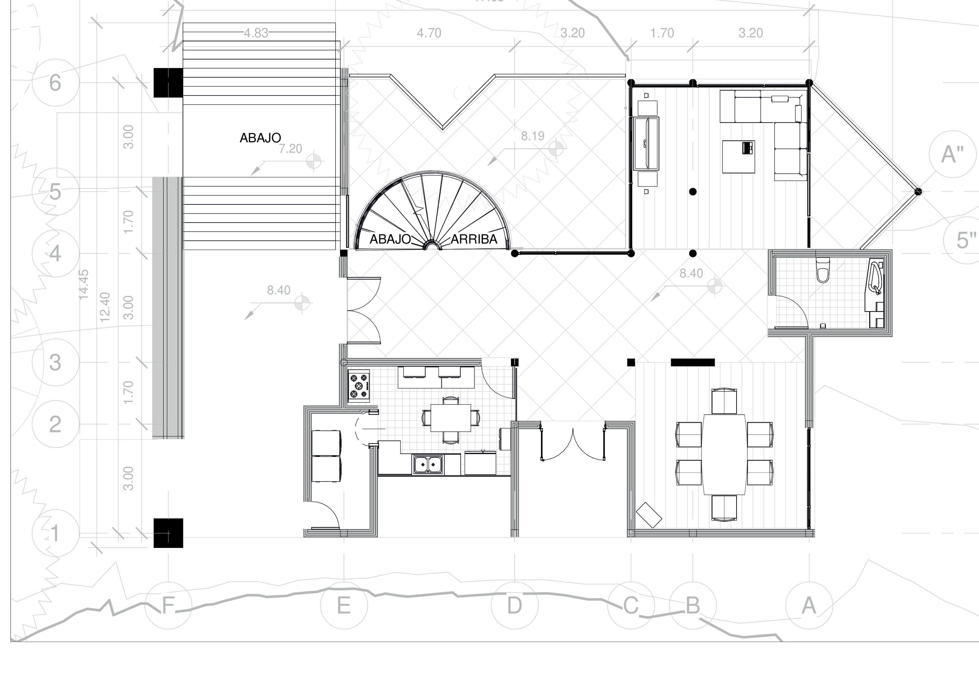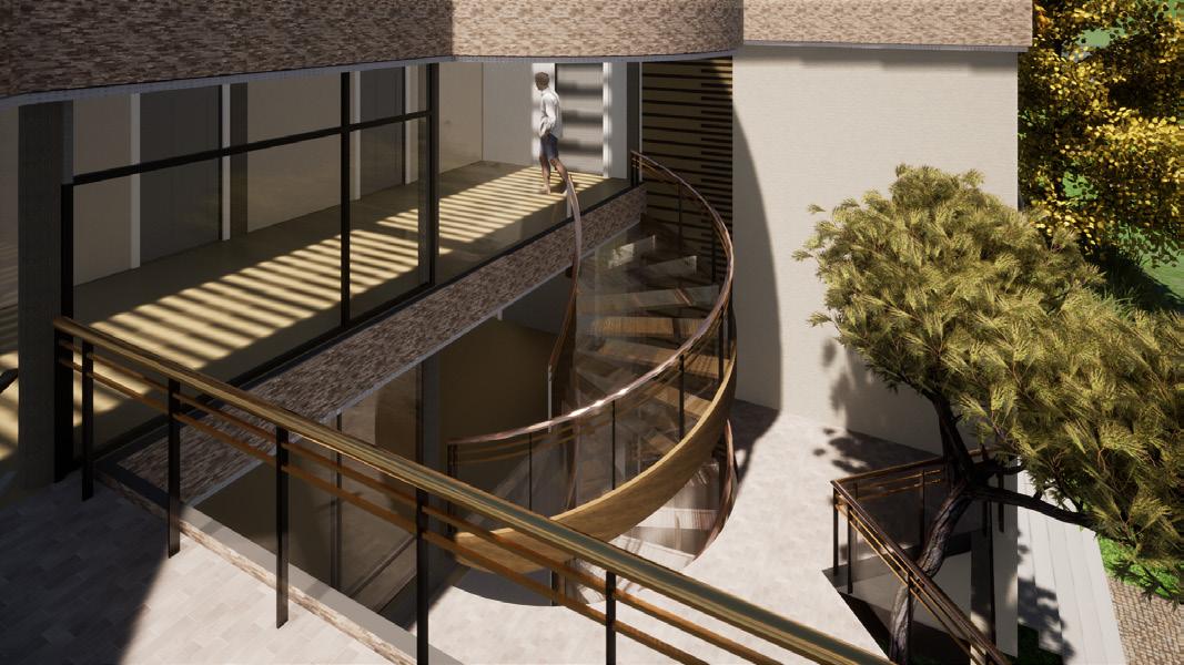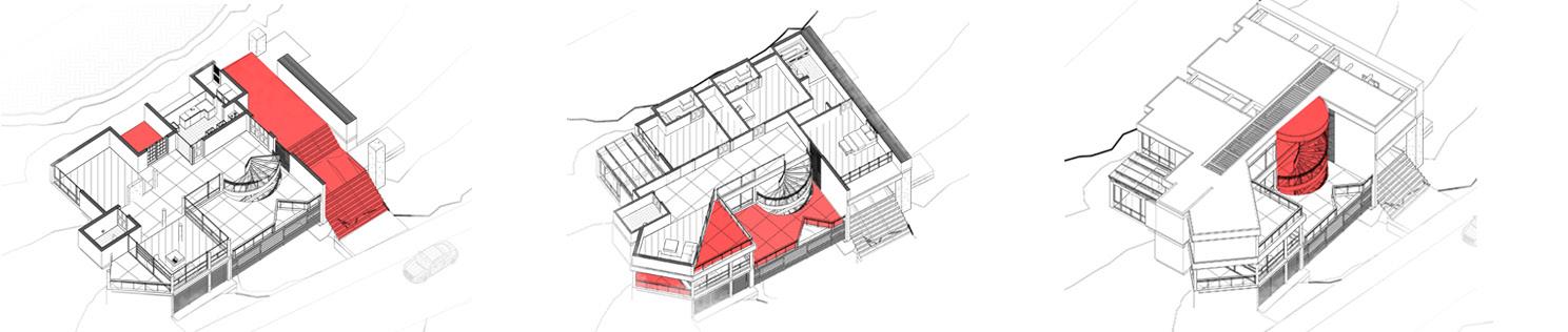 3. Circulación vertical: Expresada por un elemento helicoidal jerarquizando y sirviendo como pauta de la composición.