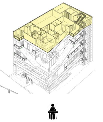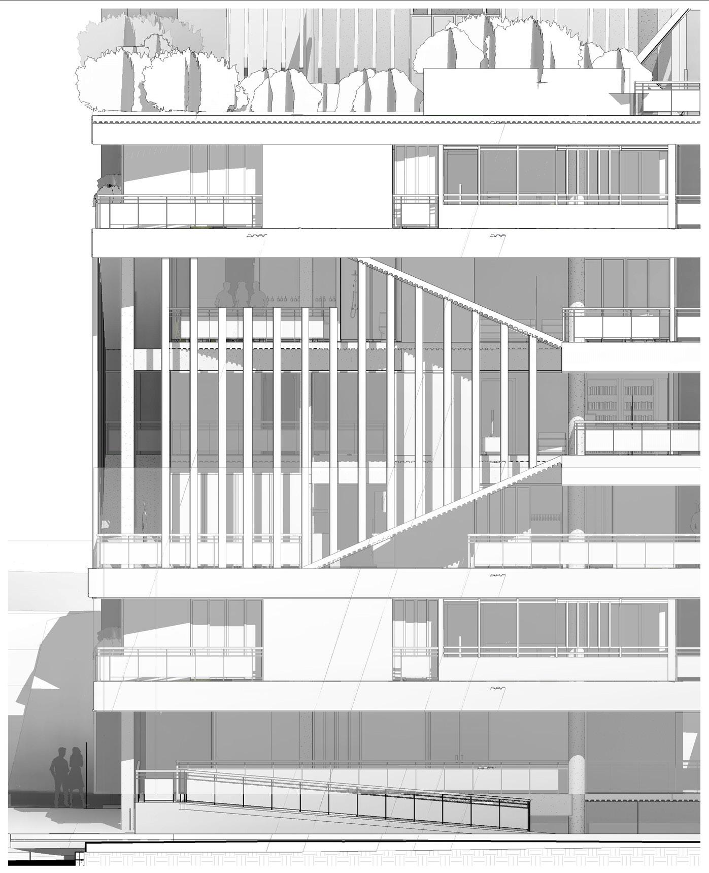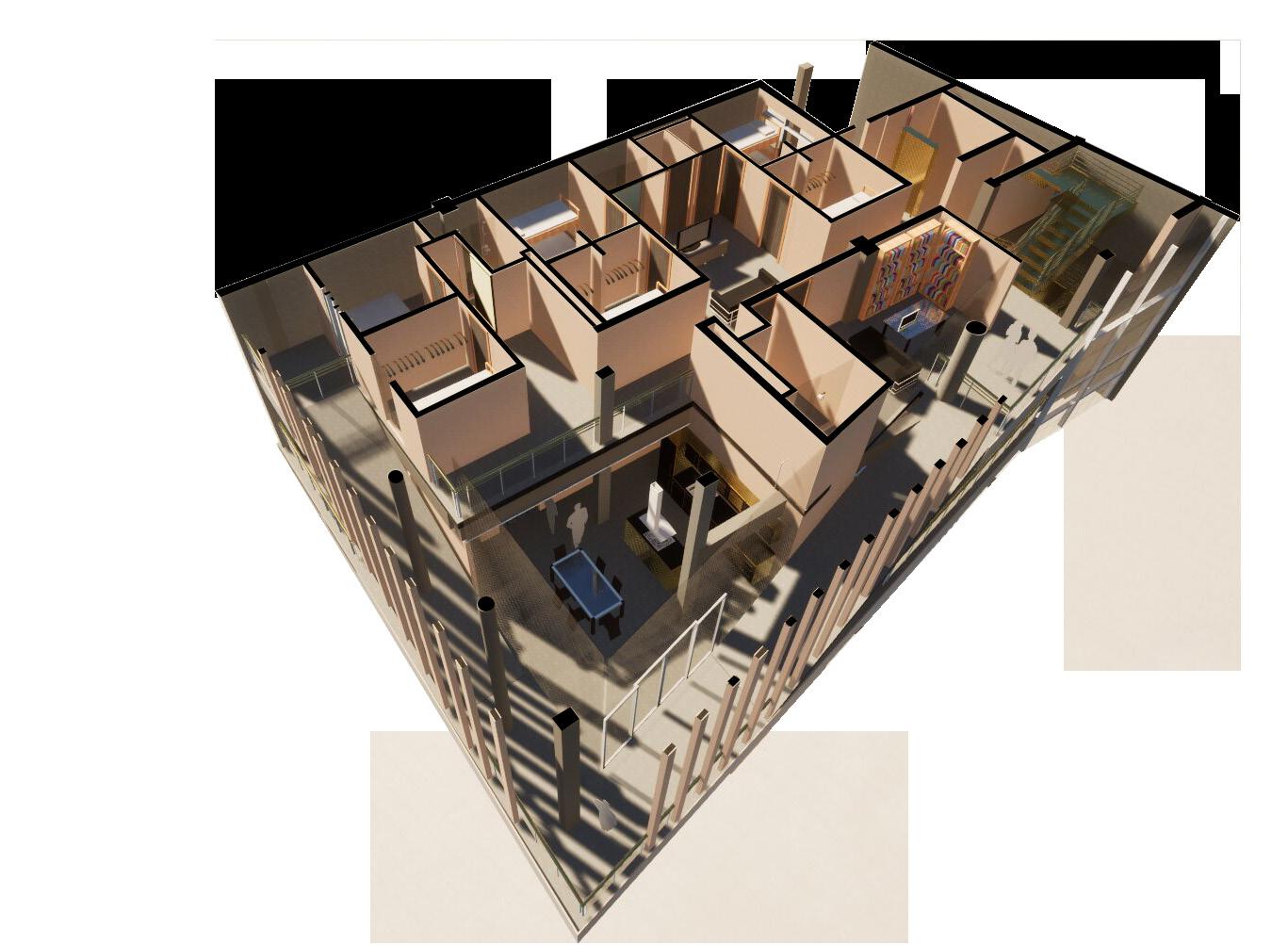 El planteamiento de diversos usos dentro del volumen genera necesidades de caracterizacion espacial fortaleciendo las condiciones interanas de cada epacio.