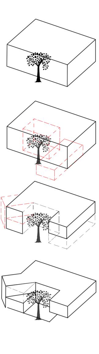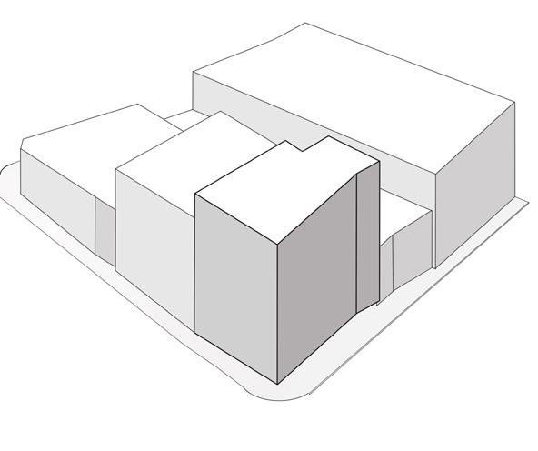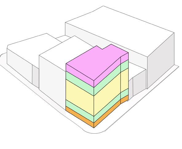 por normativa y la forma del lote, se logra determinar una volumetria inicial.