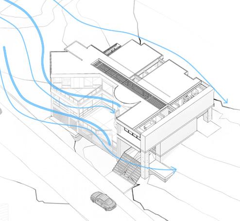 La implantación en un entorno natural respetando características naturales. Remoción de volúmenes a favor de mejorar la exposición a condiciones naturales del lote.